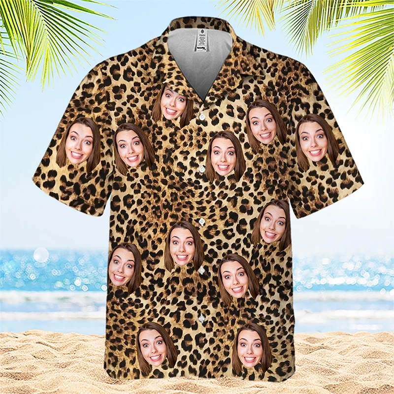 Full Print Custom Photo Hawaii Shirts Family Personalized Custom Face Unisex Hawaiian Beach Shirt Gift For Family Members