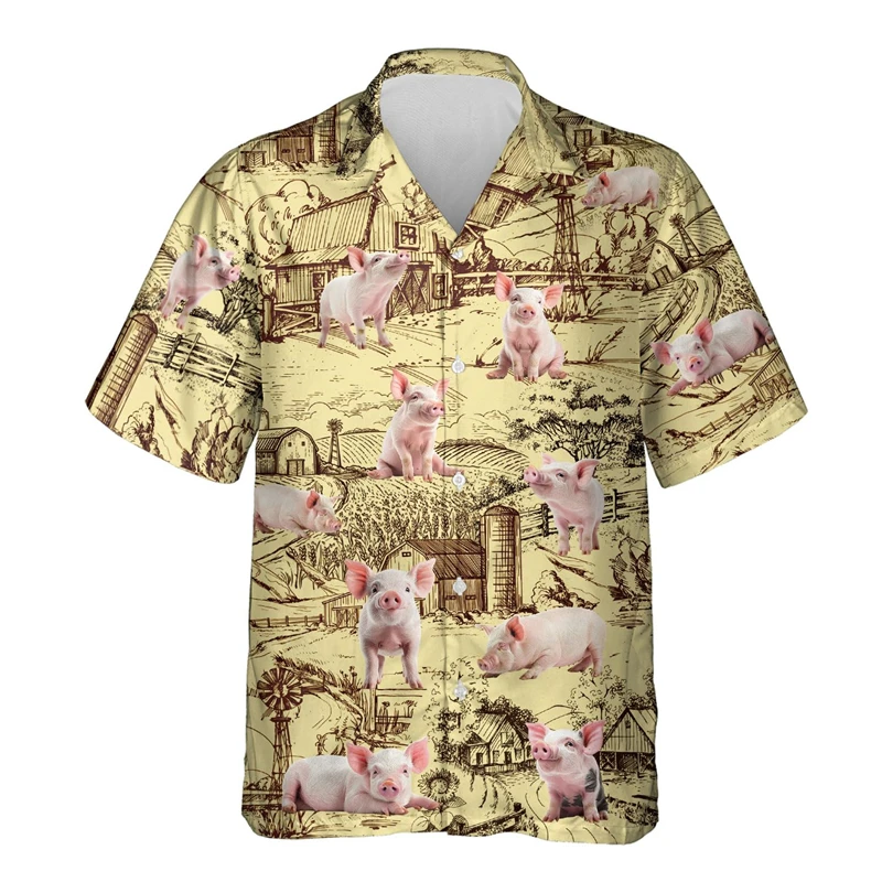 Funny Animal Pig 3D Printed Beach Shirt Cute Pet Graphic Shirts For Men Clothes Casual Hawaiian Surfing Short Sleeve Boy Blouses
