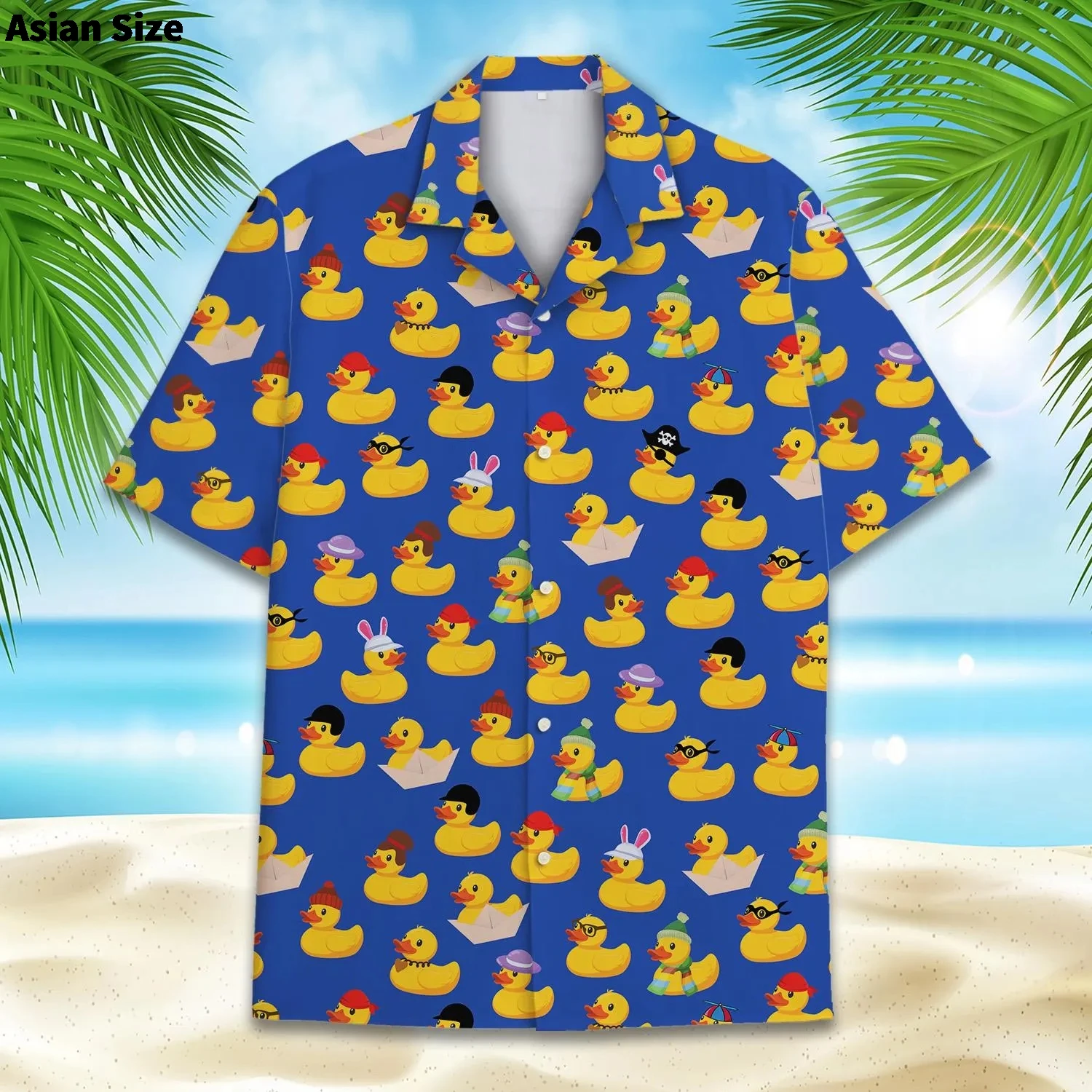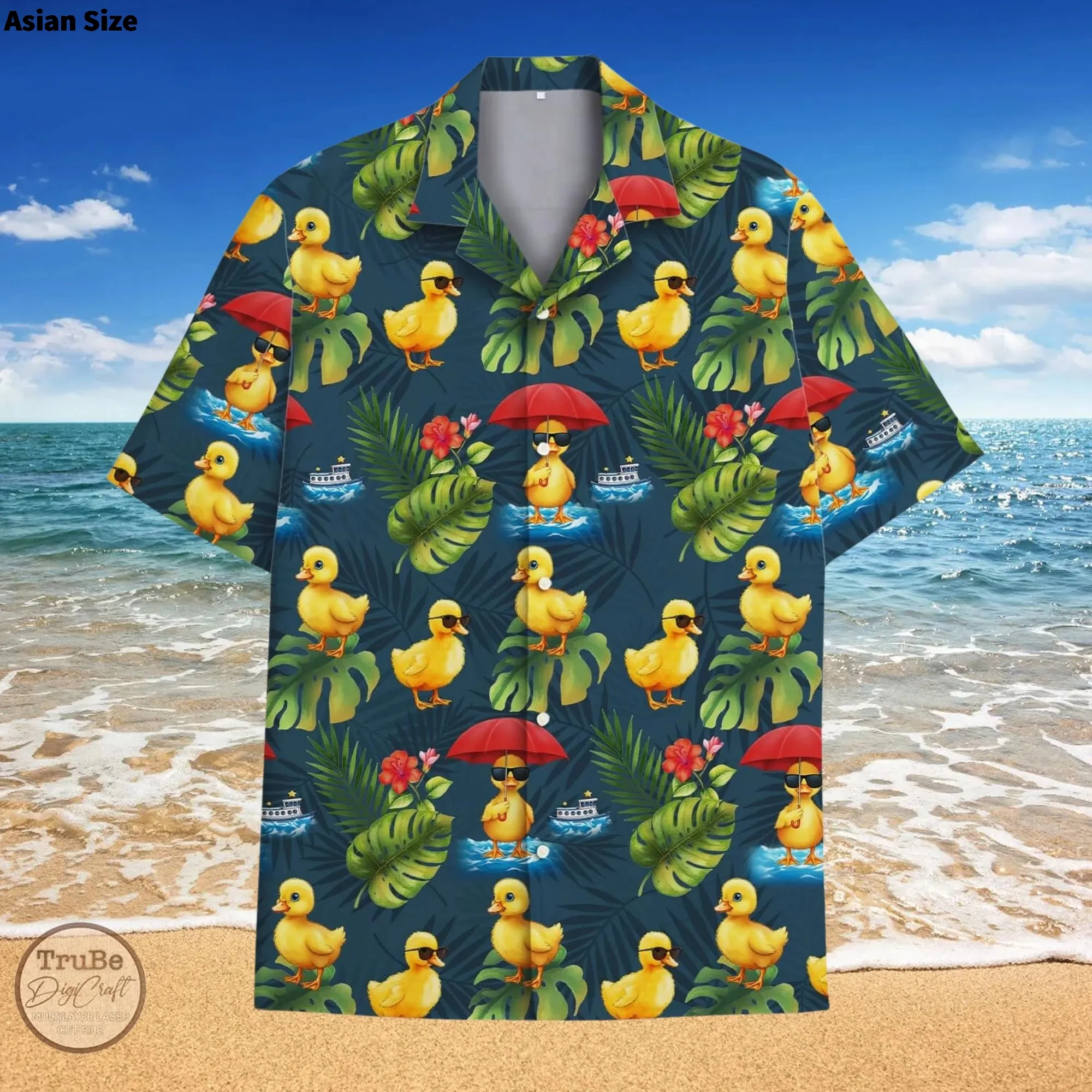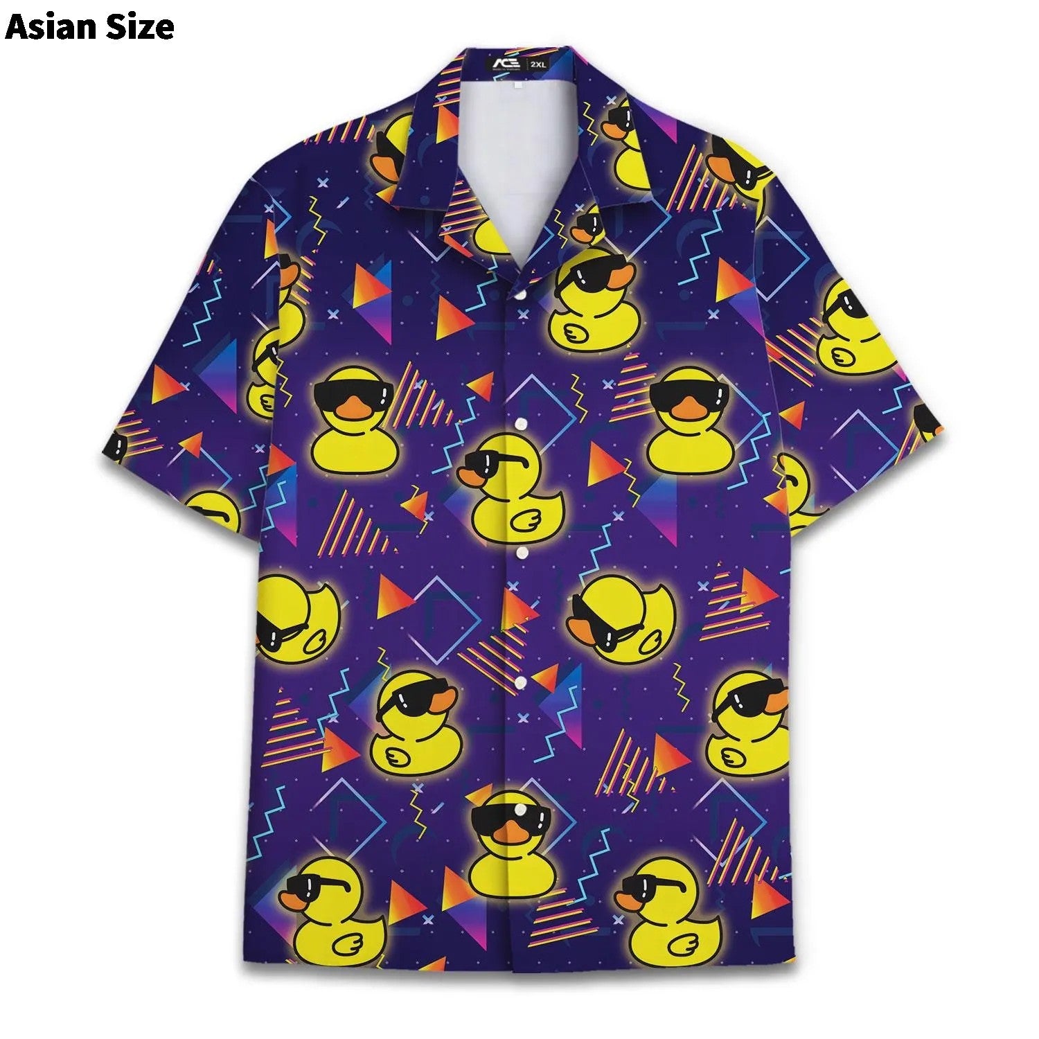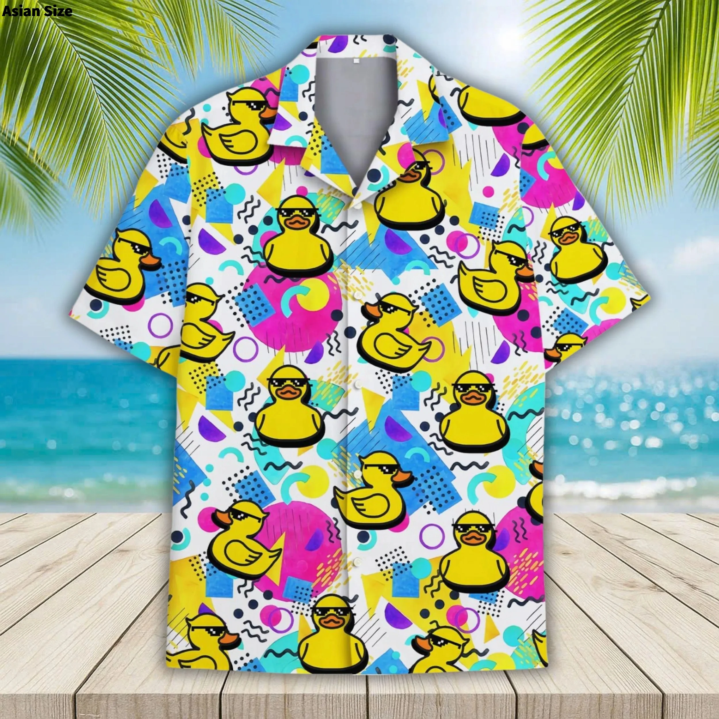 Funny Neon Rubber Duck Hawaiian Shirt For Men Galaxy Yellow Duck Mens Hawaiian Casual Button Down Shirts Short Sleeve Shirt Tops