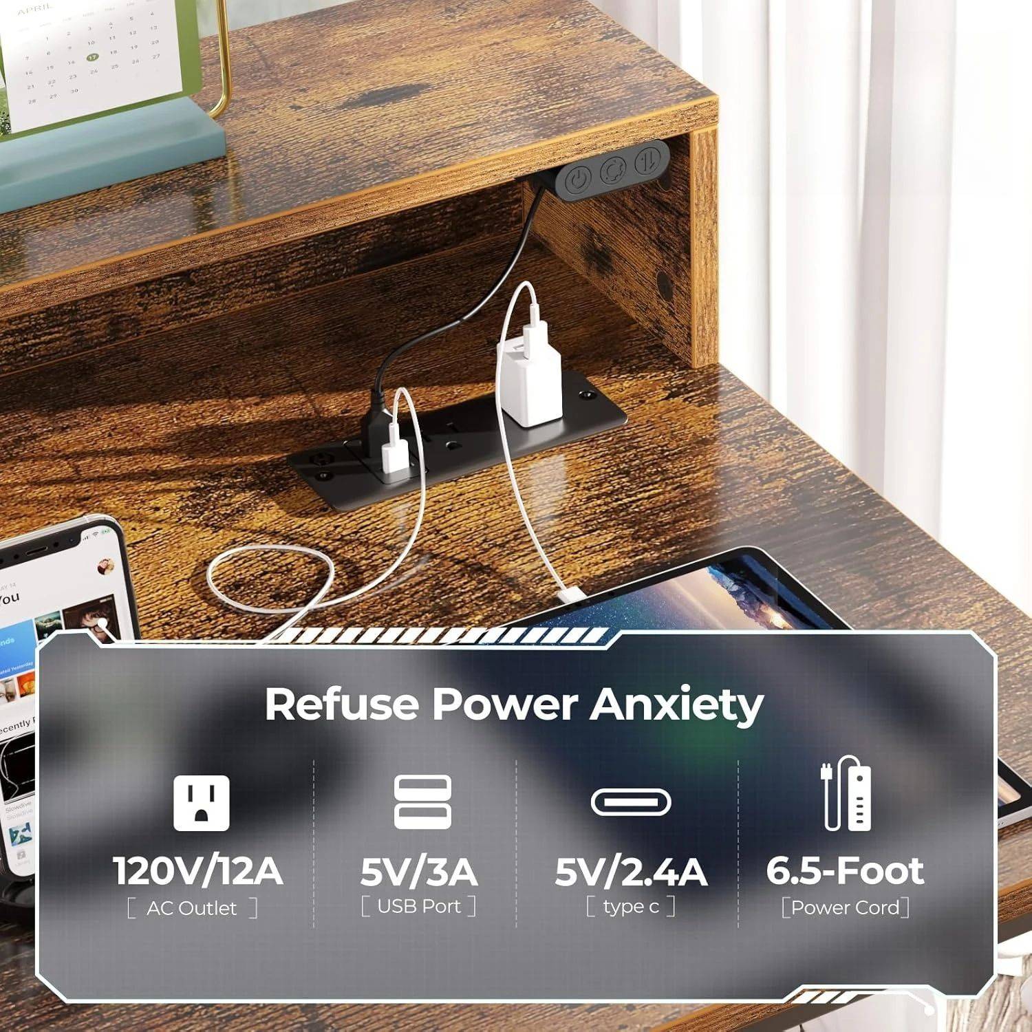 • Power Strip: This home office desk adds a built-in power strip to your desktop that includes 2 AC+2 USB+1type C to charge your phone, tablet, PS5, gamepad, and other electronic devices at the same time. No need to create anxiety about charging, making it more convenient