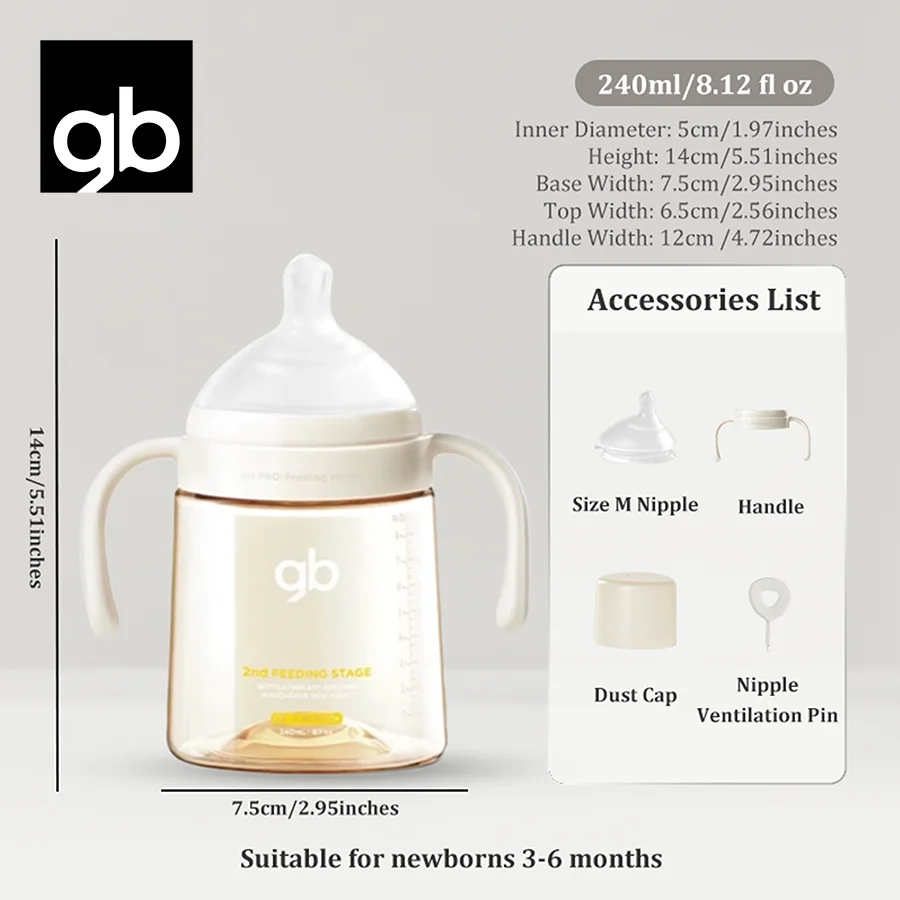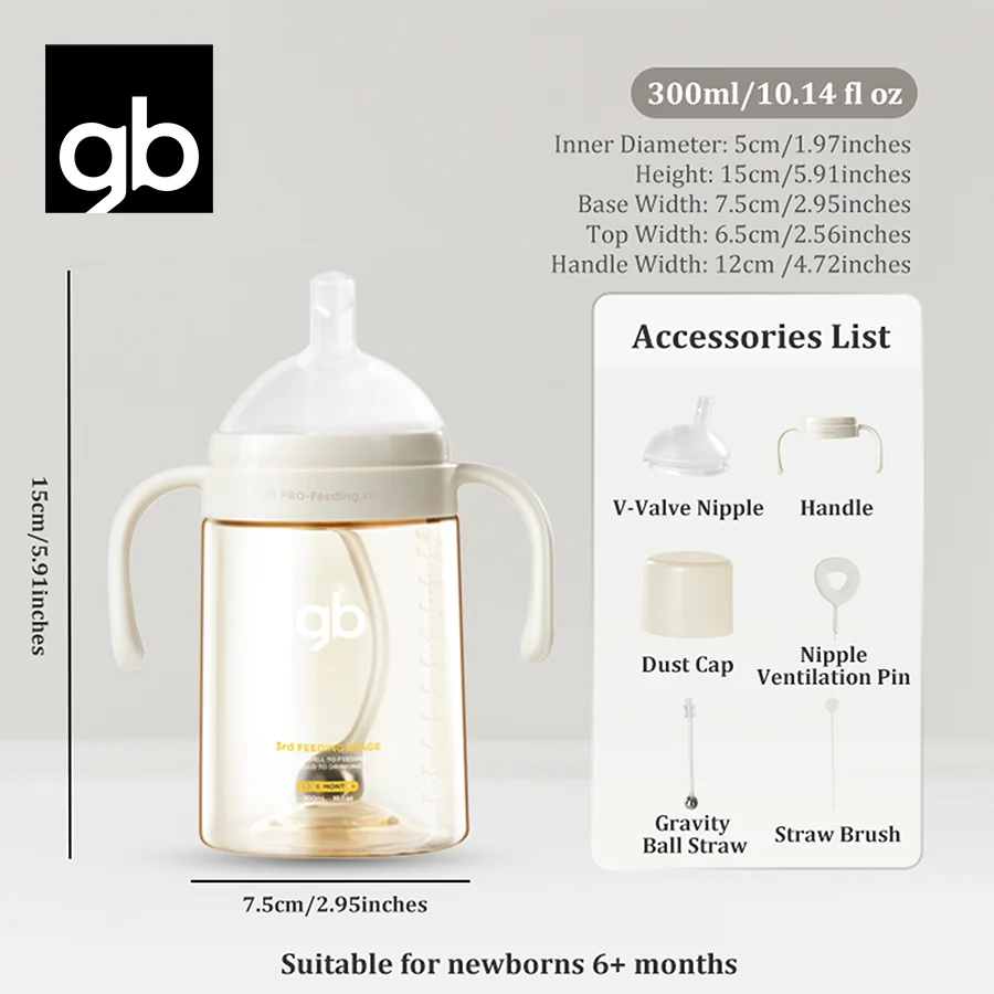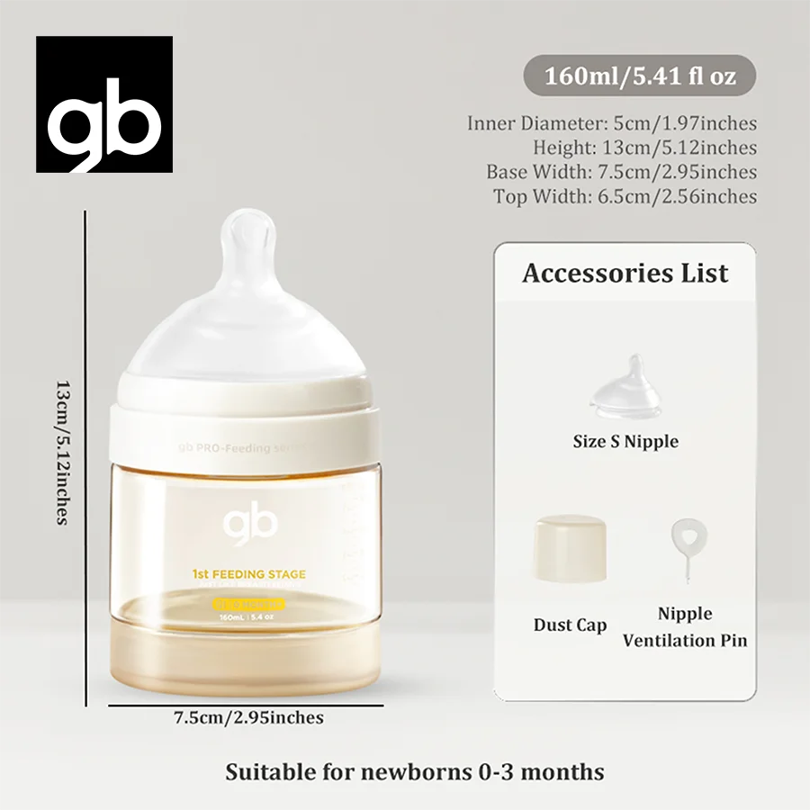 gb PPSU Baby Bottles 3 Sizes, Liquid Separation Tech, 7FB Breast-like Nipple & V-Valve Straw, No Spit-Up, BPA-Free