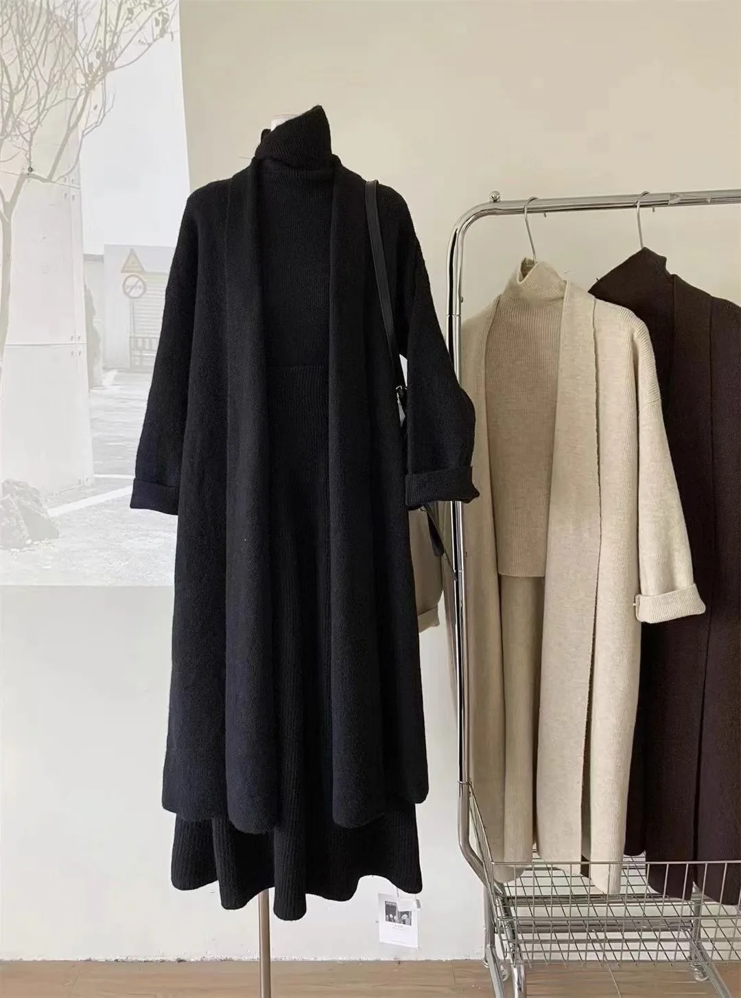Gentle and Lazy Slimming Knitting 2025 Autumn New Loose Sweater Cardigan Skirt Fashion Set