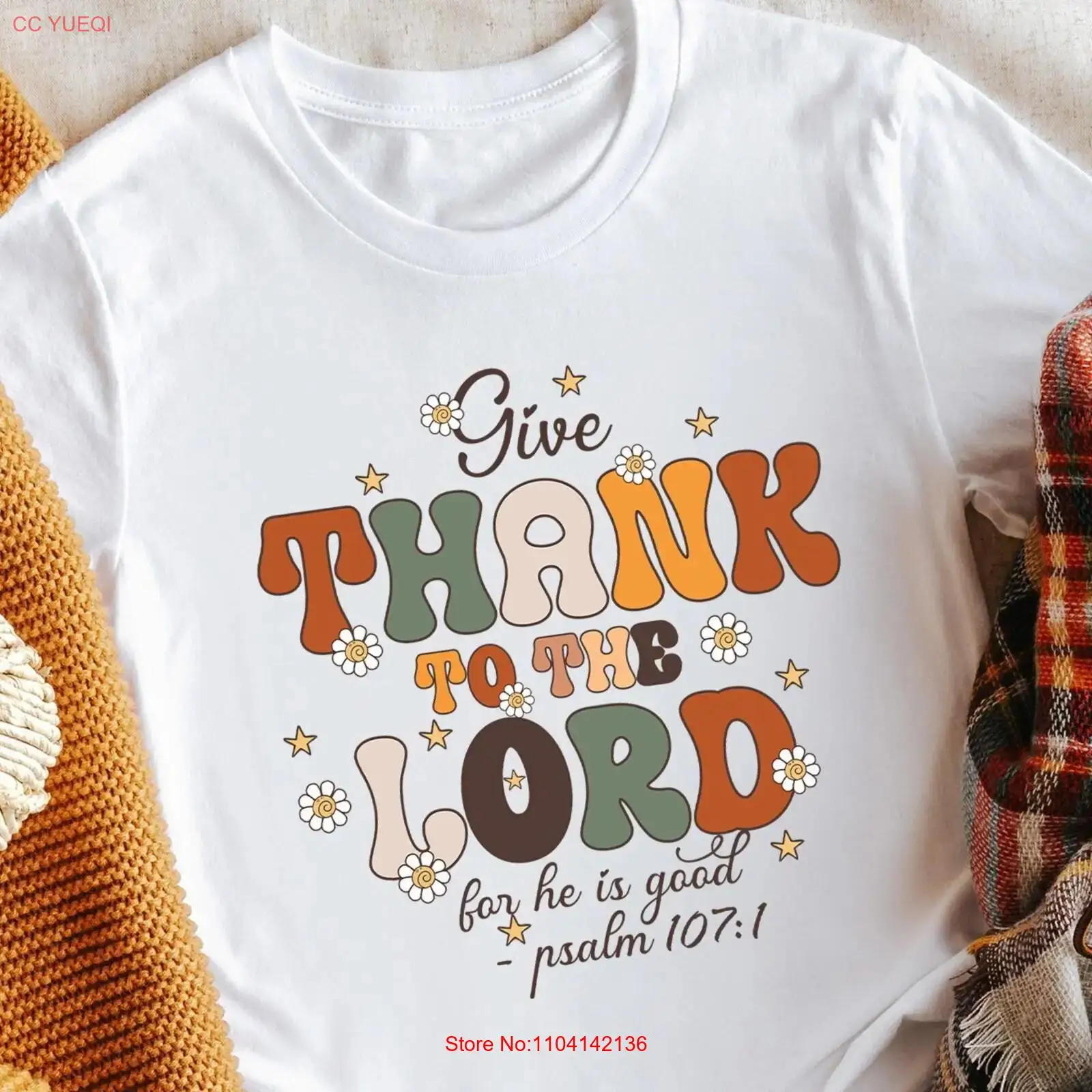 Give Thank To The Lord For He Is Good T Shirt Religious Quote Faithful Thanksgiving Psalm 107 1 vintage Washed Stretched Casual