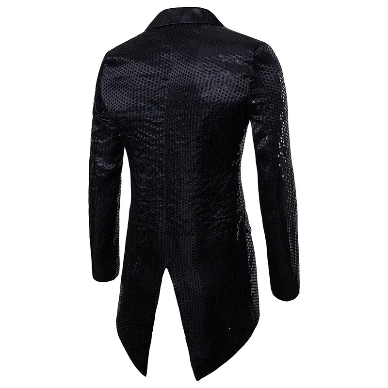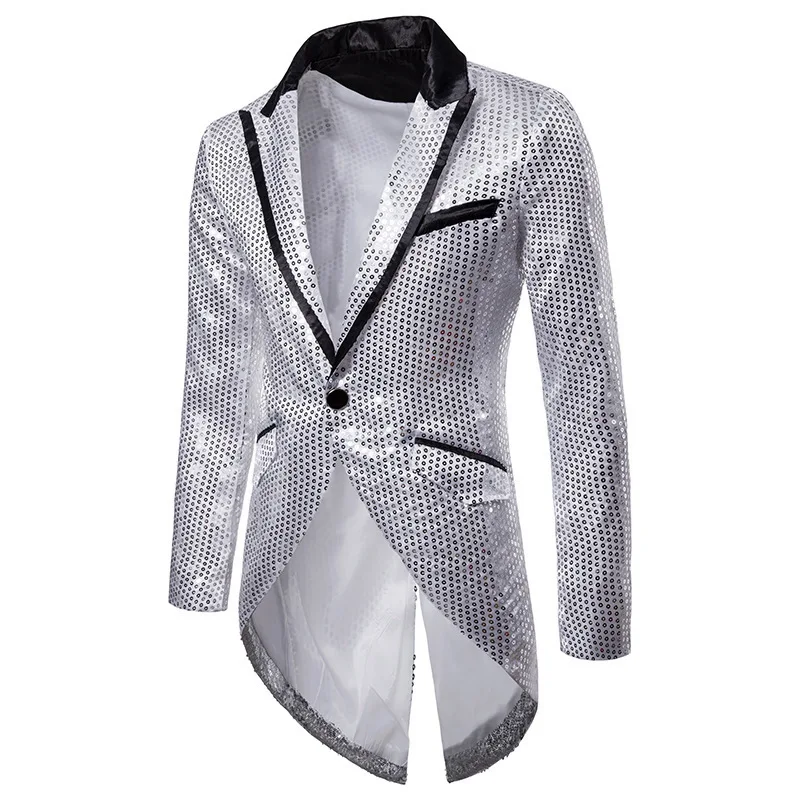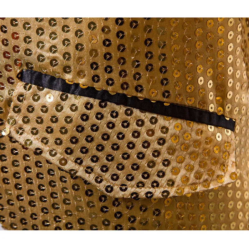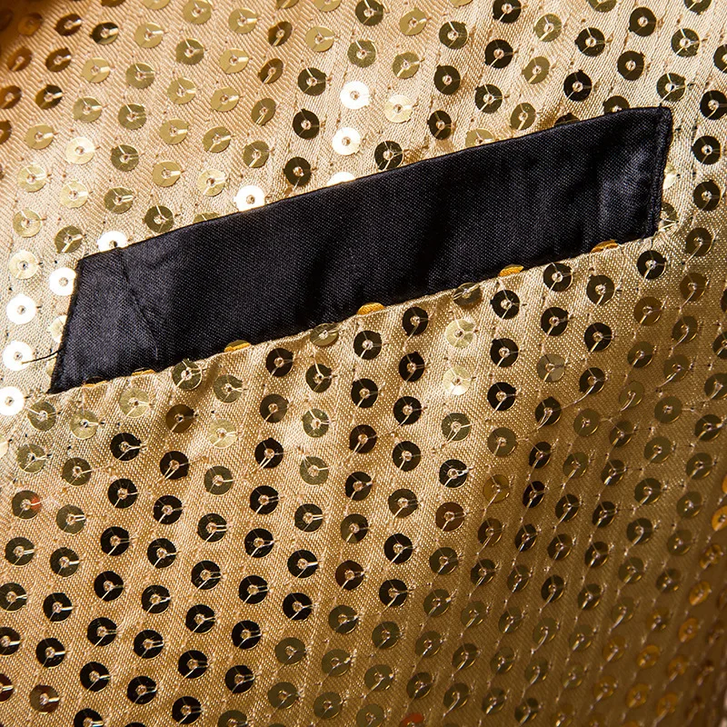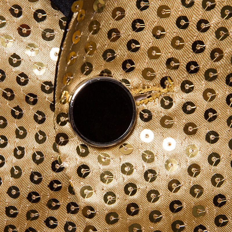 Gold Men's V-Neck Long Sleeve Tuxedo, TV Performance Magic Long Jacket Shiny Sequin Decoration Red Blue Black Blazer S-XXL