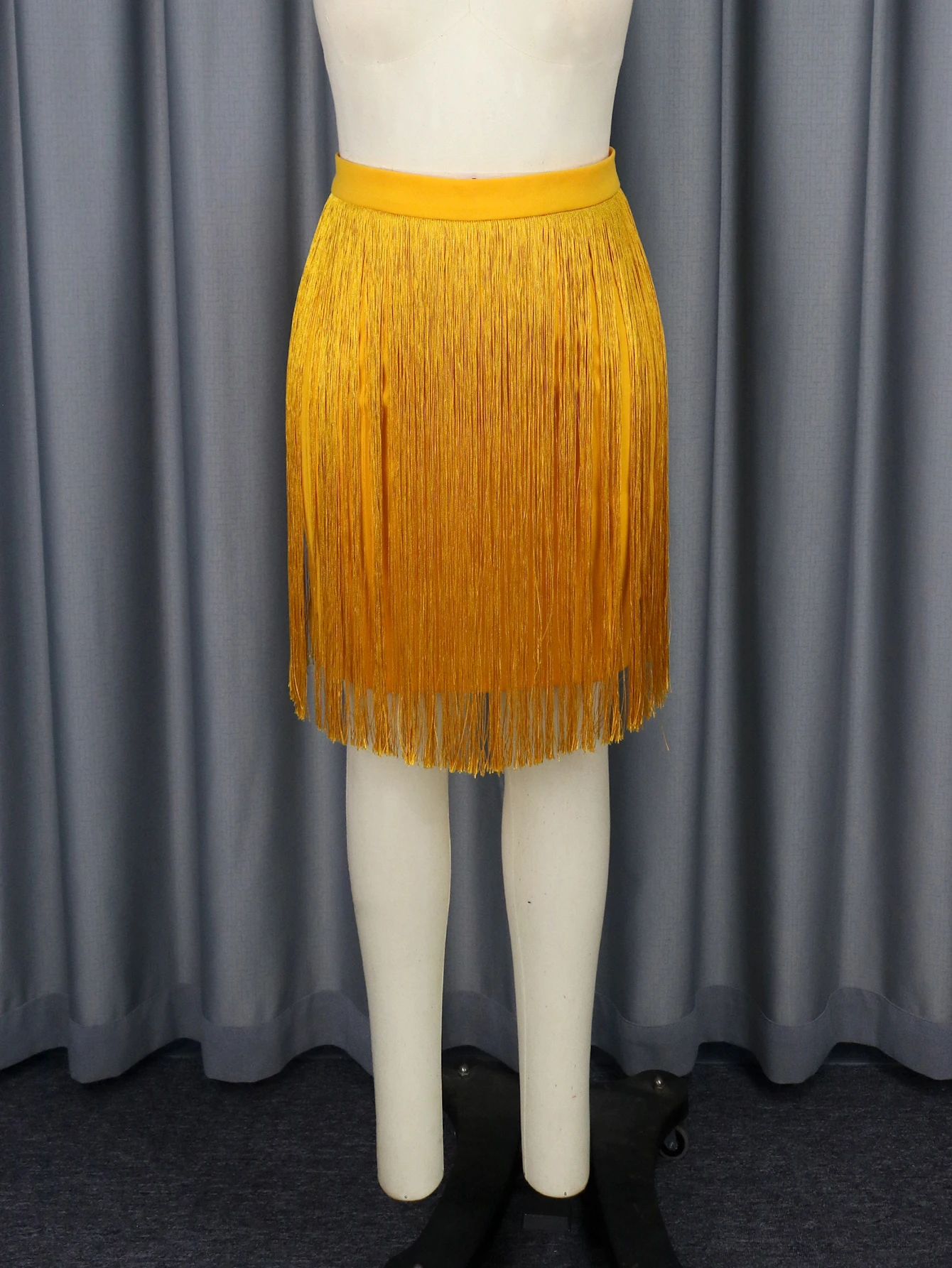 Gold Plus Size Fringe Skirts High Waist Package Hip Sexy Mini Evening Cocktail Party Hem Tassel Skirt for Women 2024 3XL 4XL