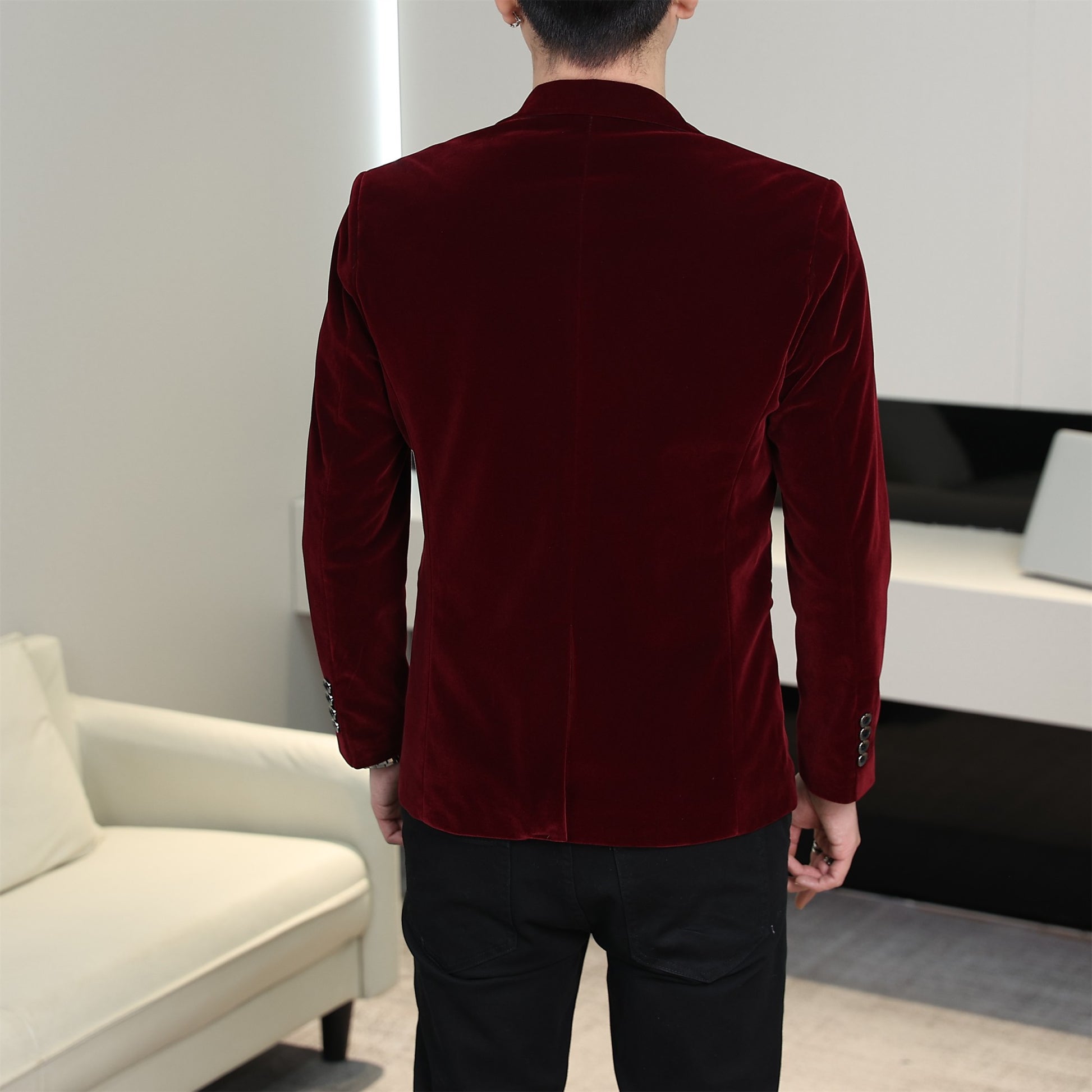 Gold Velvet Suit Men's Trendyy Performance Suit Spring & Fall All Year Round Slim Thin Youth Dress Groomsmen Groom's Dress Wedding Party Suit