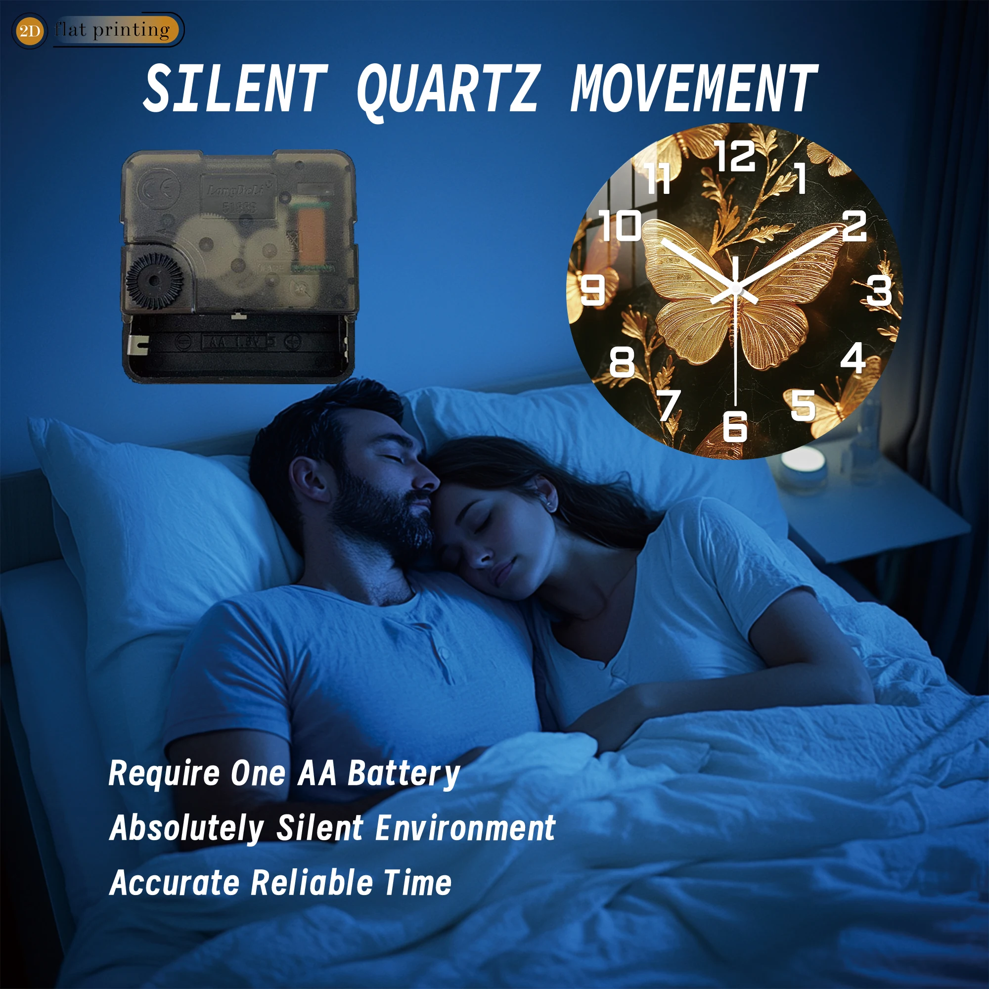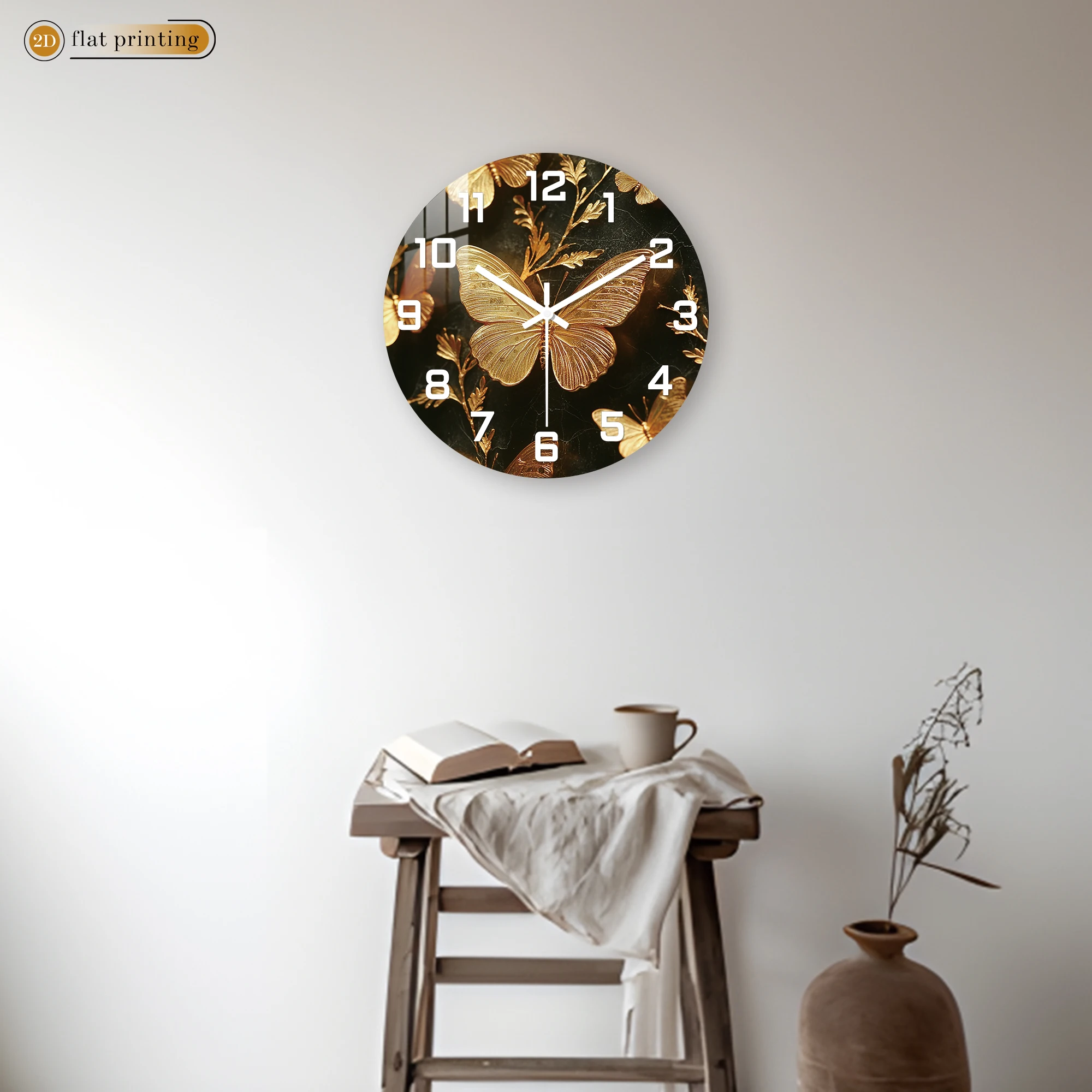 Golden Butterfly Elegance Wall Clock, Luxe Marble Background Decor, Glamorous Home or Office Timekeeper