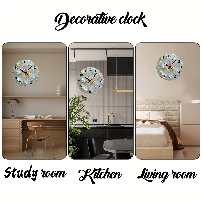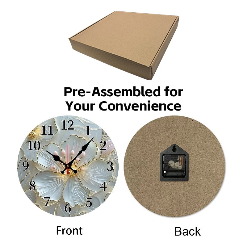 Golden & Pink Floral Wooden Round Silent Hanging Wall Clock, Suitable For Living Room,Office,Study Room, Bedroom,Home Decoration