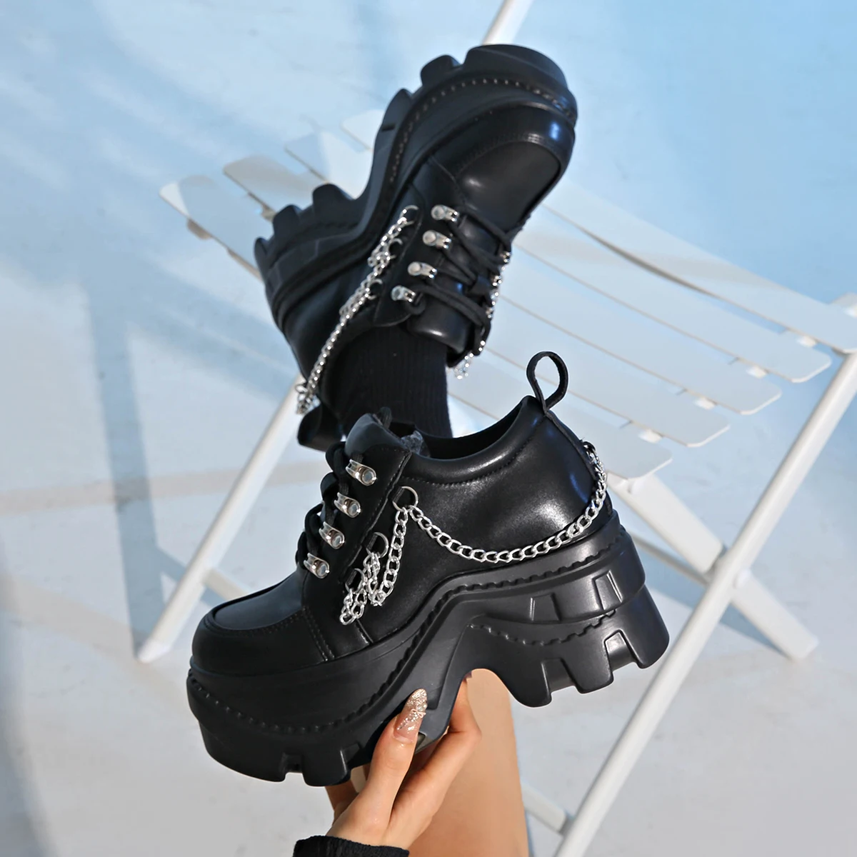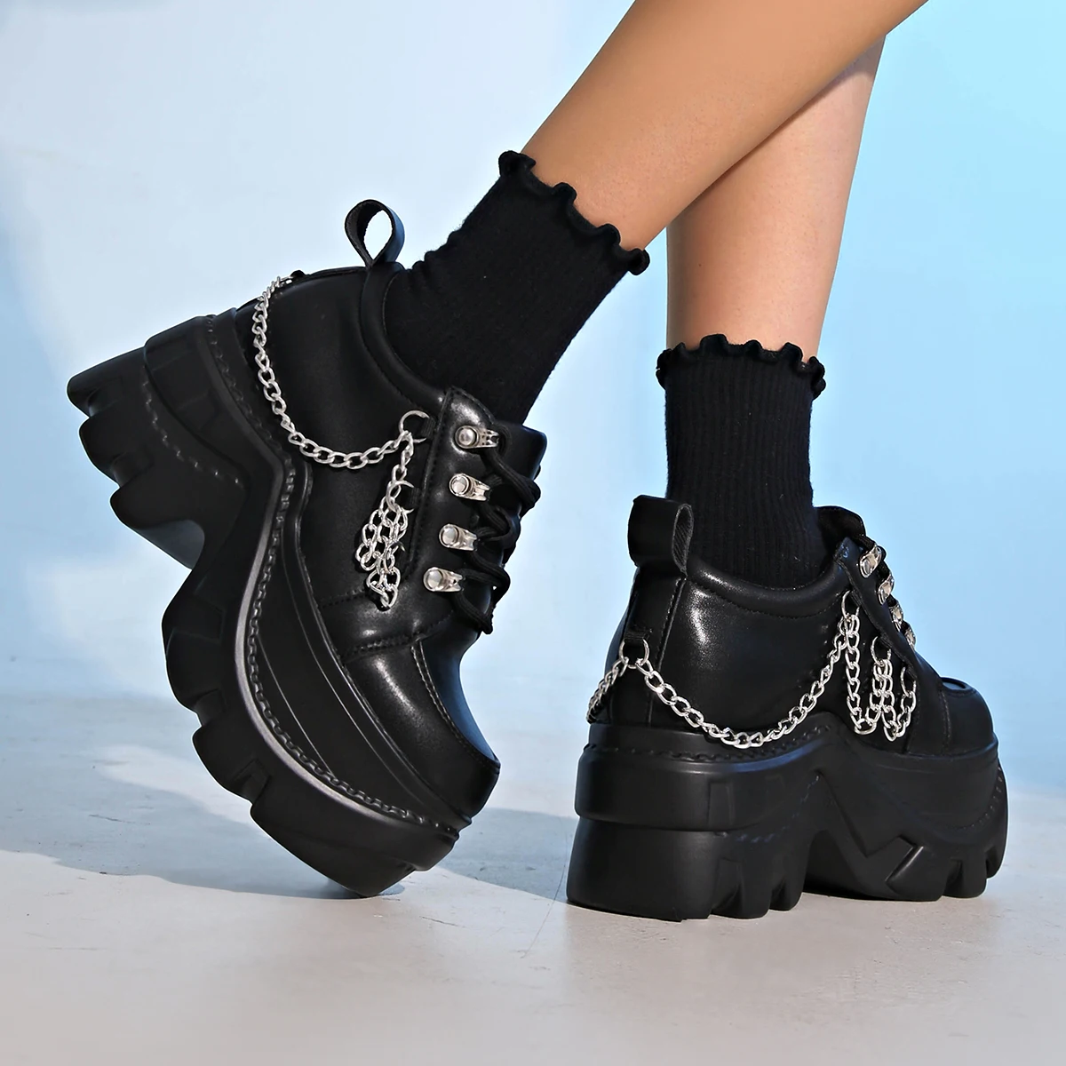 Gothic Punk Chunky Sneakers for Women Black Chain Decor Platform Sports Shoes Woman Thick Sole Non Slip Punk Sneakers Plus Size