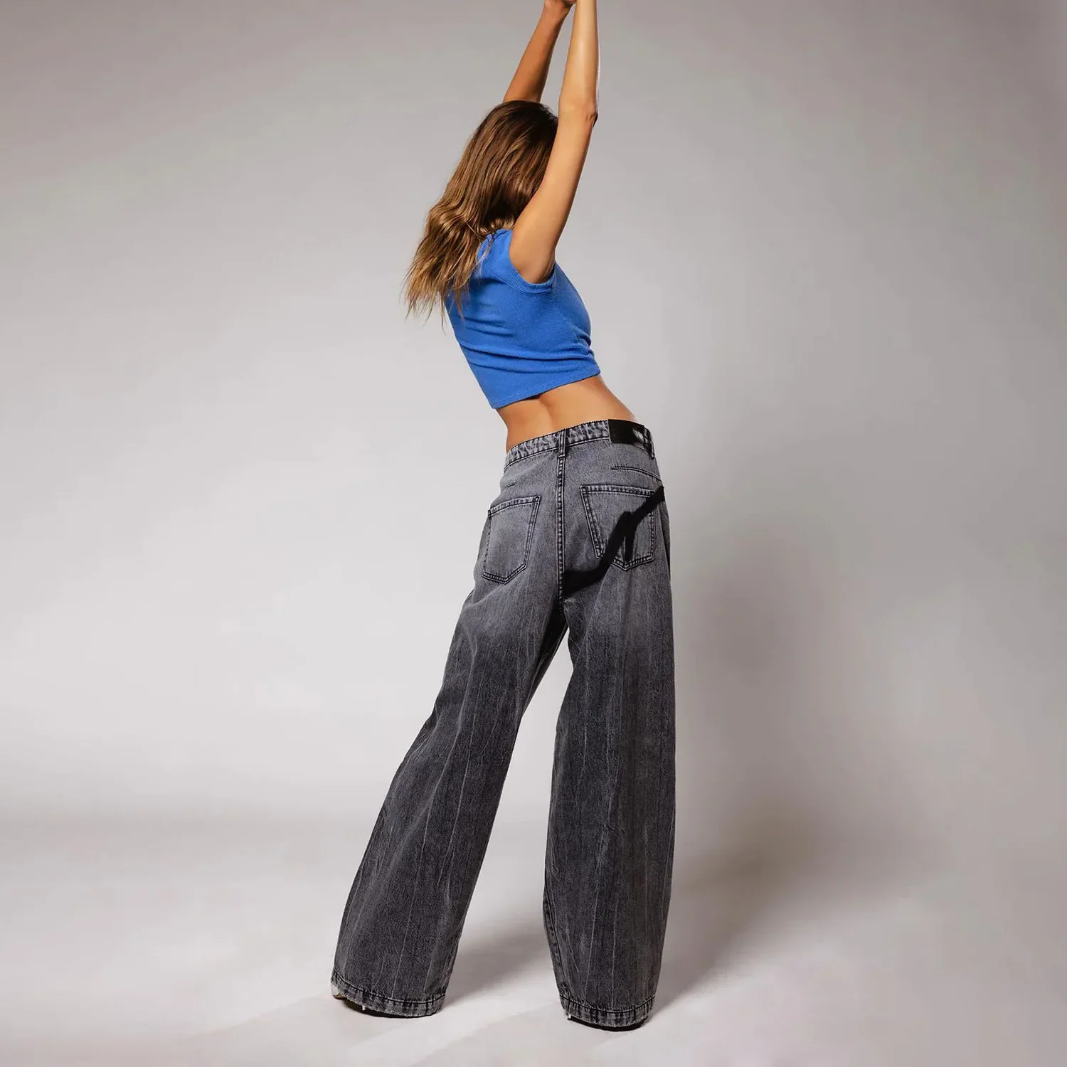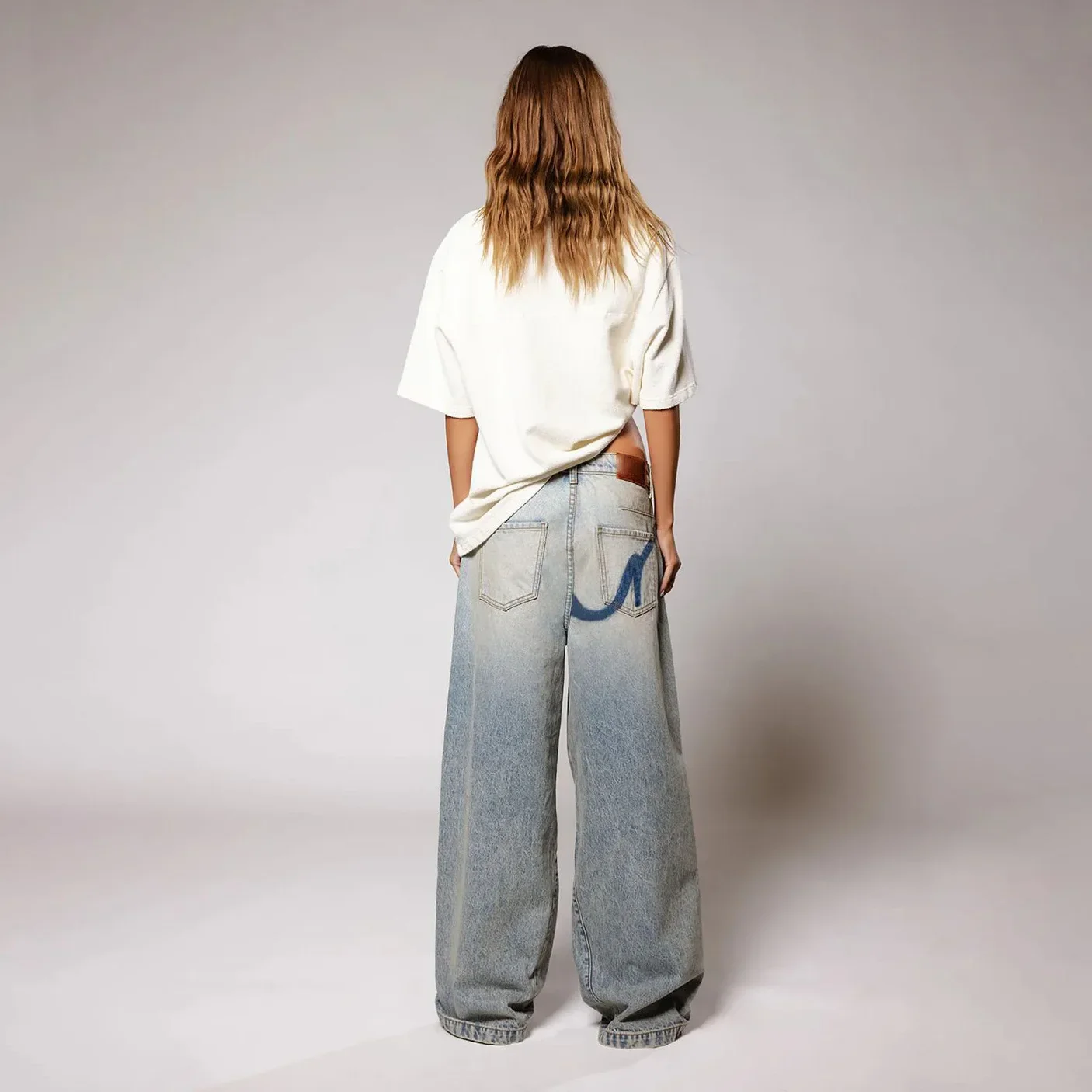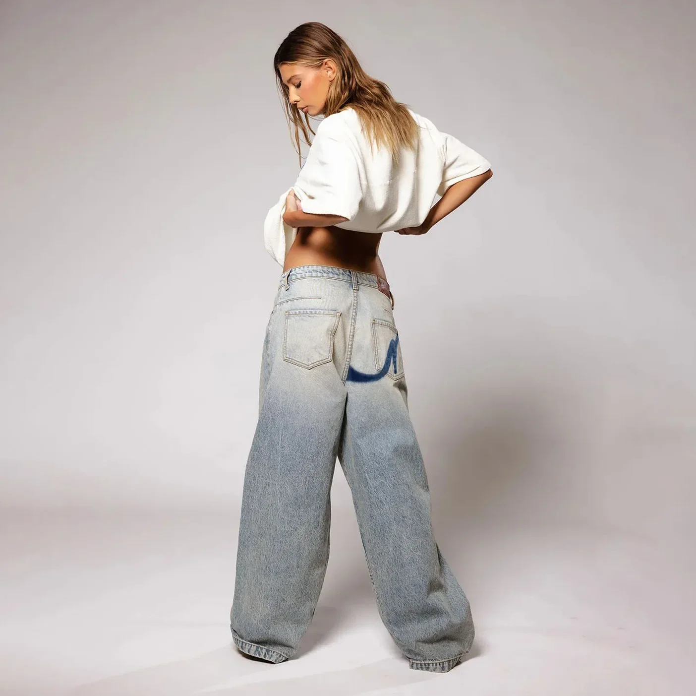 Gradient Color Bell Bottom Jeans Women's Loose Straight American Casual High Street New Autumn Pants High Waist Denim