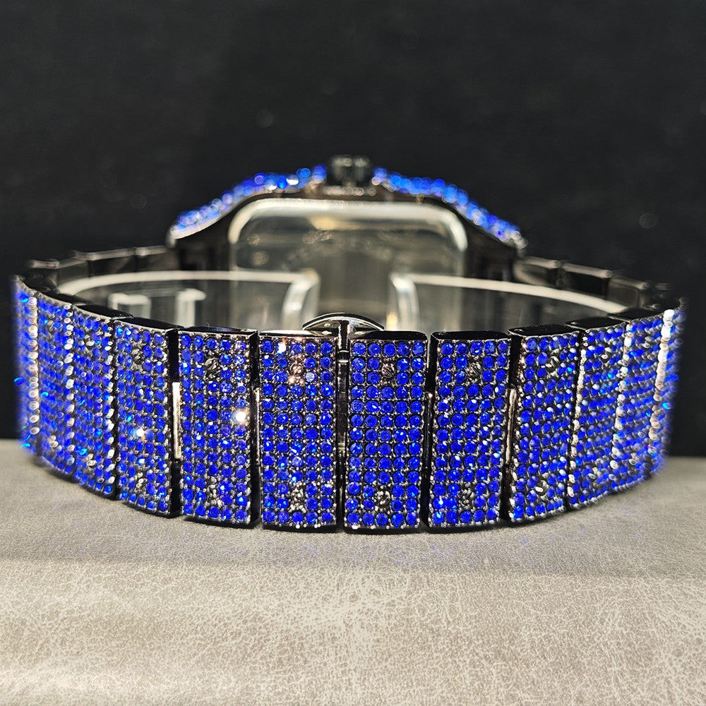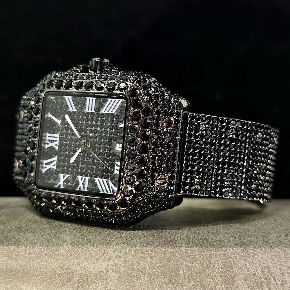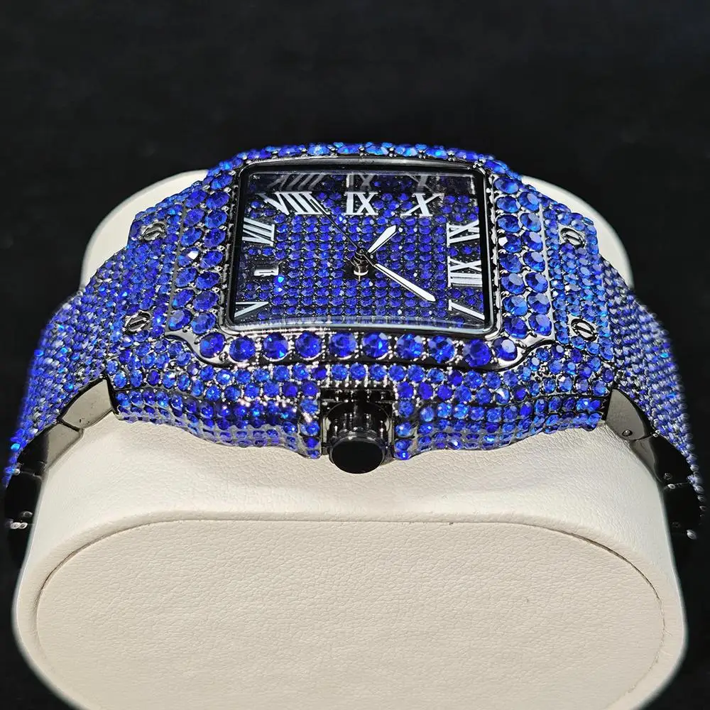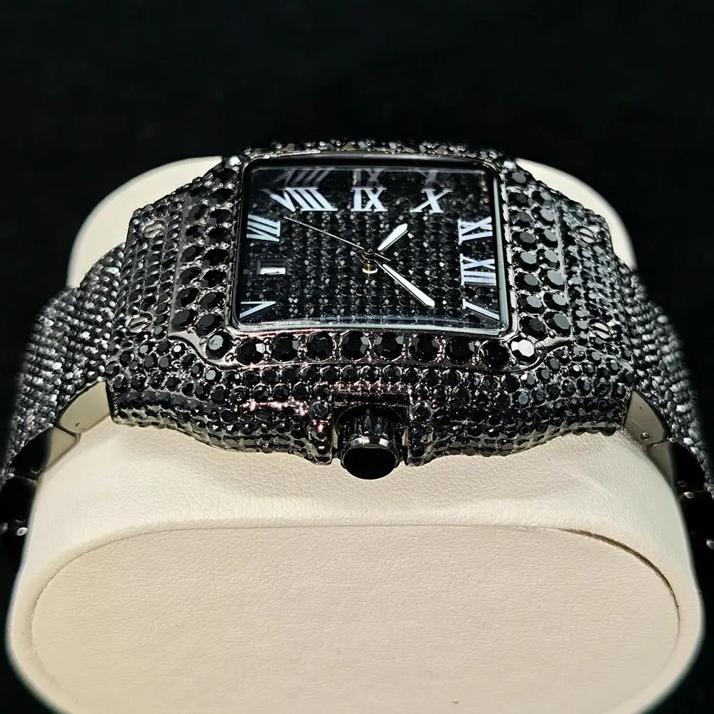 Green Diamond Watch For Men Brand UNIGUET Fashion Roman Literal Quartz Clock Man Hip Hop Iced Jewelry Square Wristwatch 2025 New