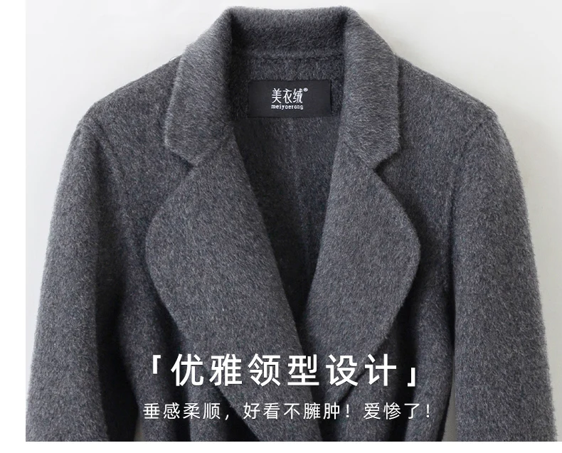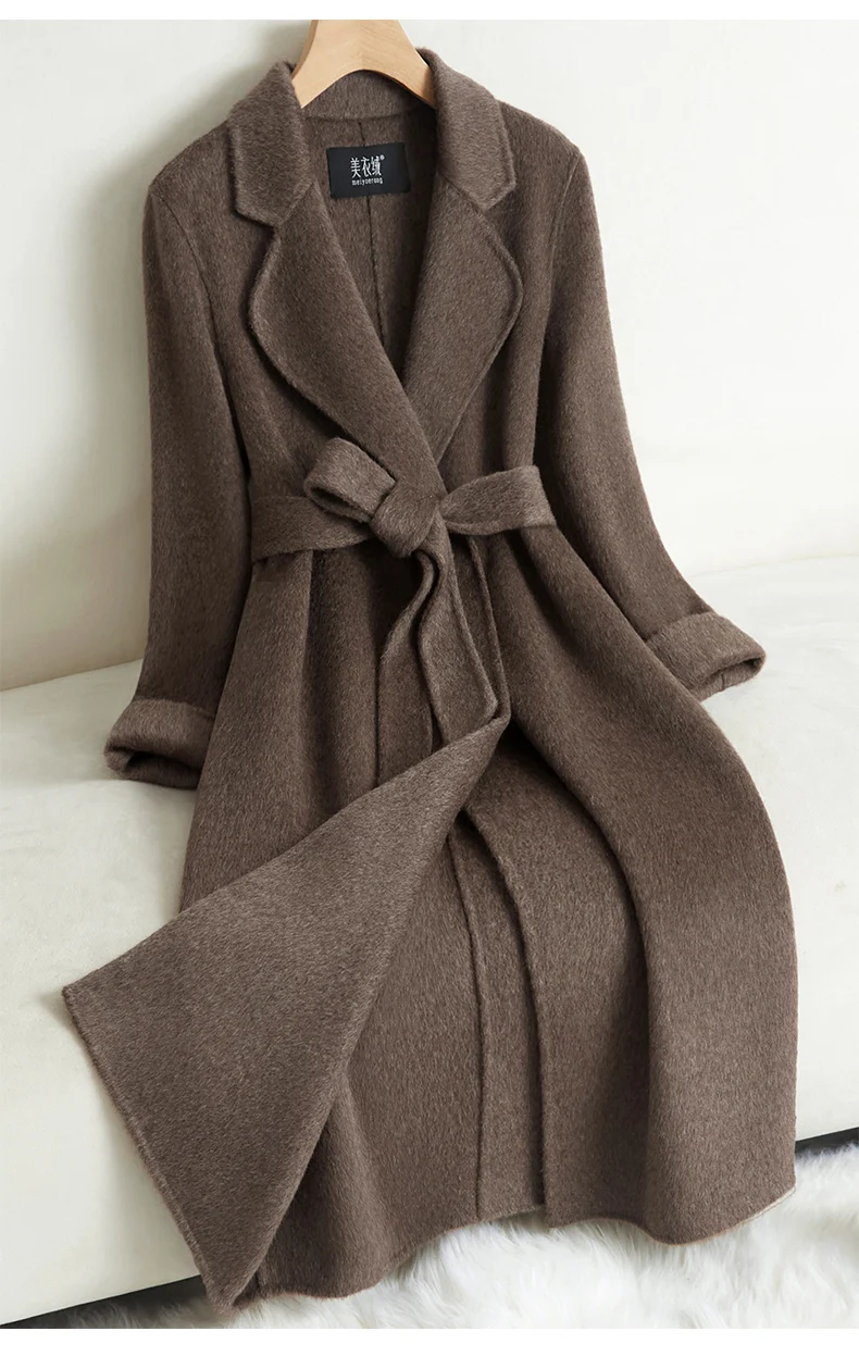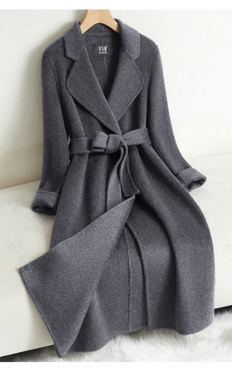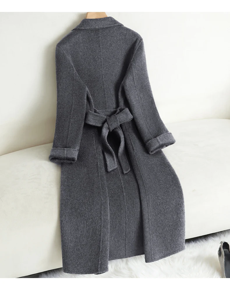 Grey Double-sided Cashmere Coat For women Slim For Autumn Winter New Winter High-end Temperament Thick Woolen Coats With belt