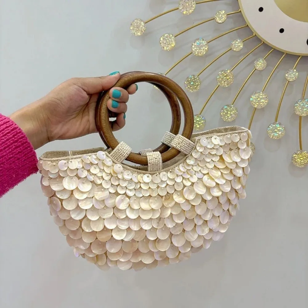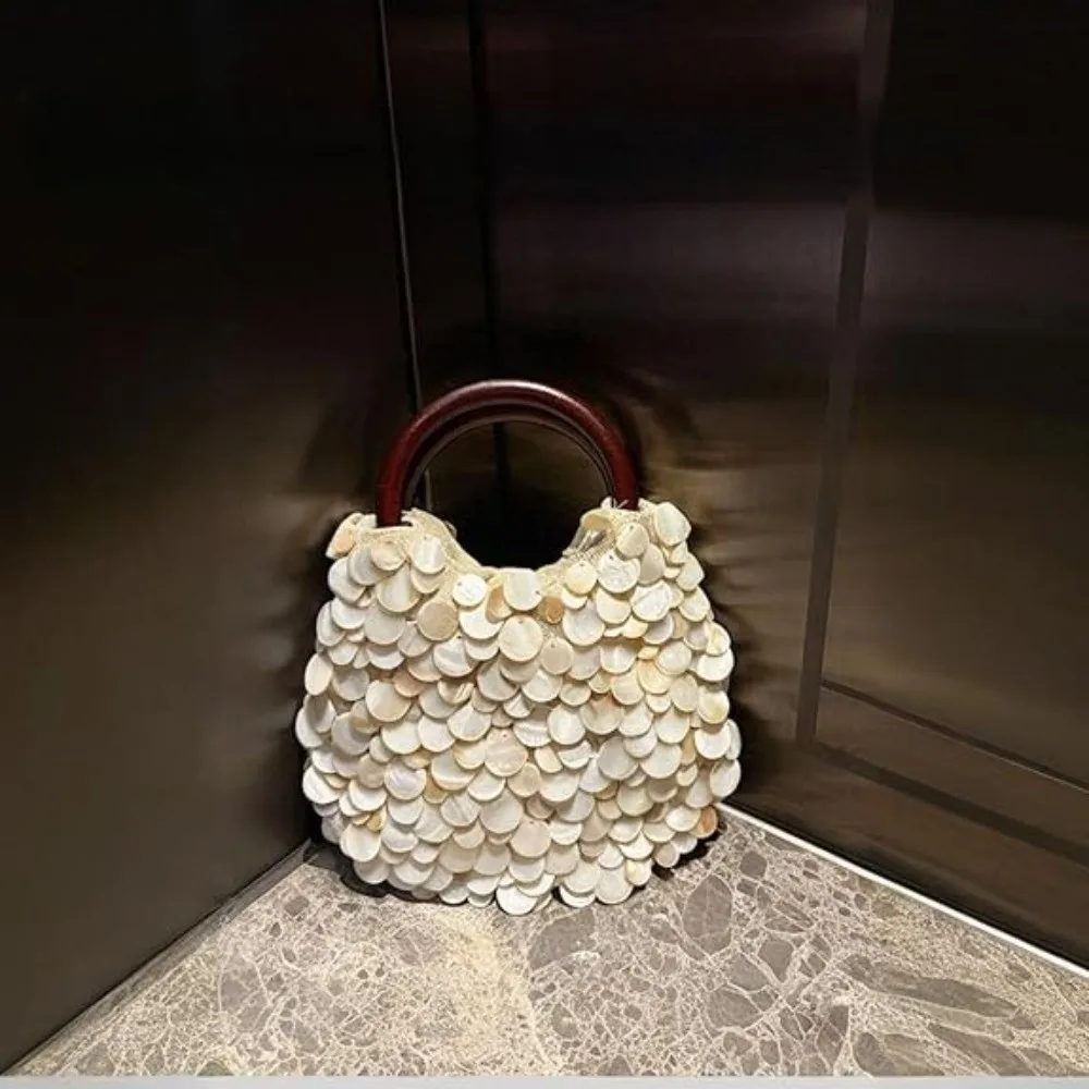 Handmade Fairy Beaded Bag?? ??Large Capacity ?Compact Size?? ??Seashell Clutch Purse?? Mermaid Style?? Shell Embellishments??