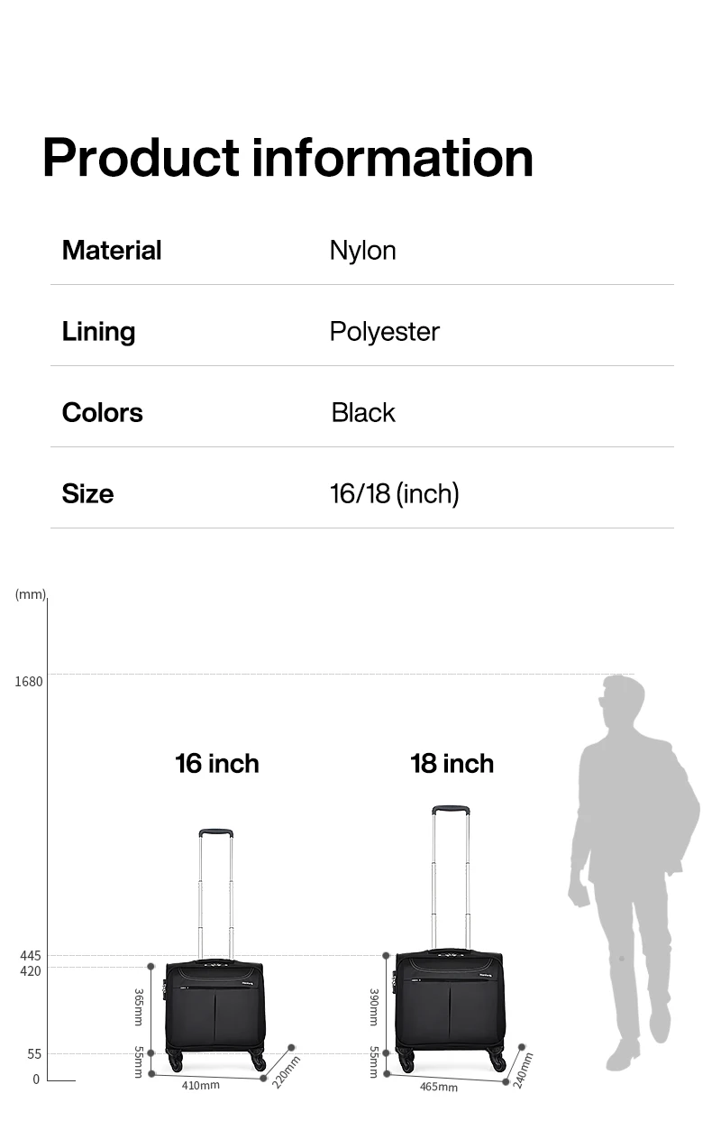 Hanke Men Business Travel Luggage Women Carry On Suitcase Spinner Wheels Rolling Bag 16 18 Inch