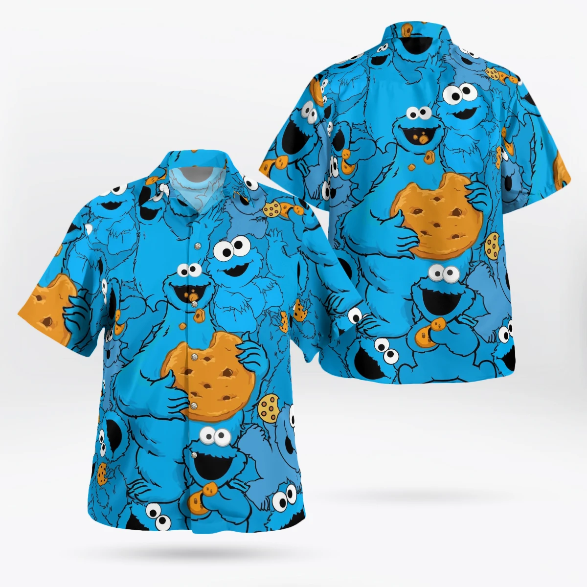 Harajuku Anime 3D Elmo Shirt Hawaiian Shirt Men's Summer Short sleeved Shirt Men's Shirt 2024 Plus Size 3xlshirt Chemistry Homme