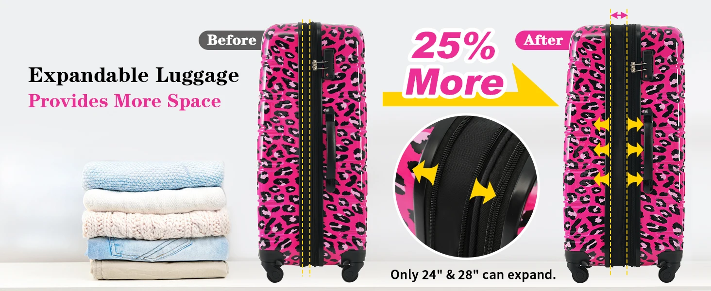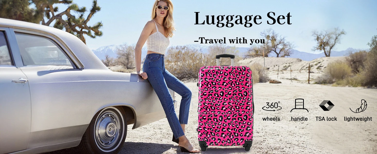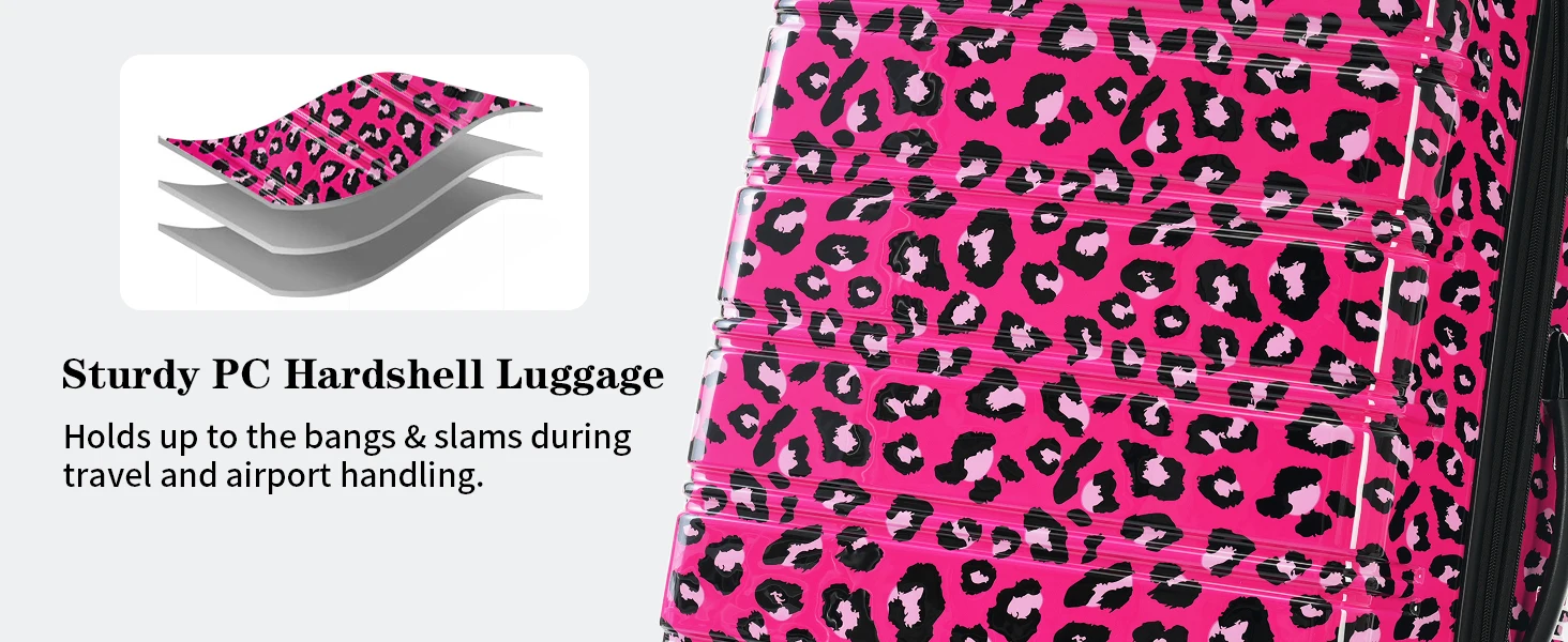 Material: These luggage sets with wheels are made from high tenacity PC material, harder and more resistant to pressure, effectively reducing damage caused by collisions during travel.The surface of the suitcase is designed with leopard pattern, which is more fashionable.