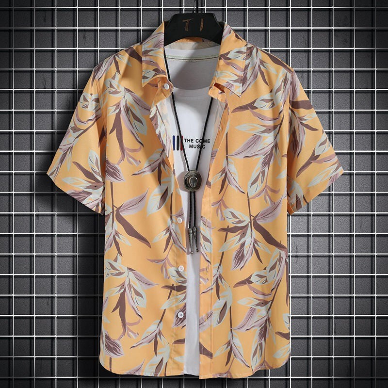 Hawaiian beach shirts Men's short-sleeved casual shirts Seaside vacation quick-drying clothes Loose floral tops
