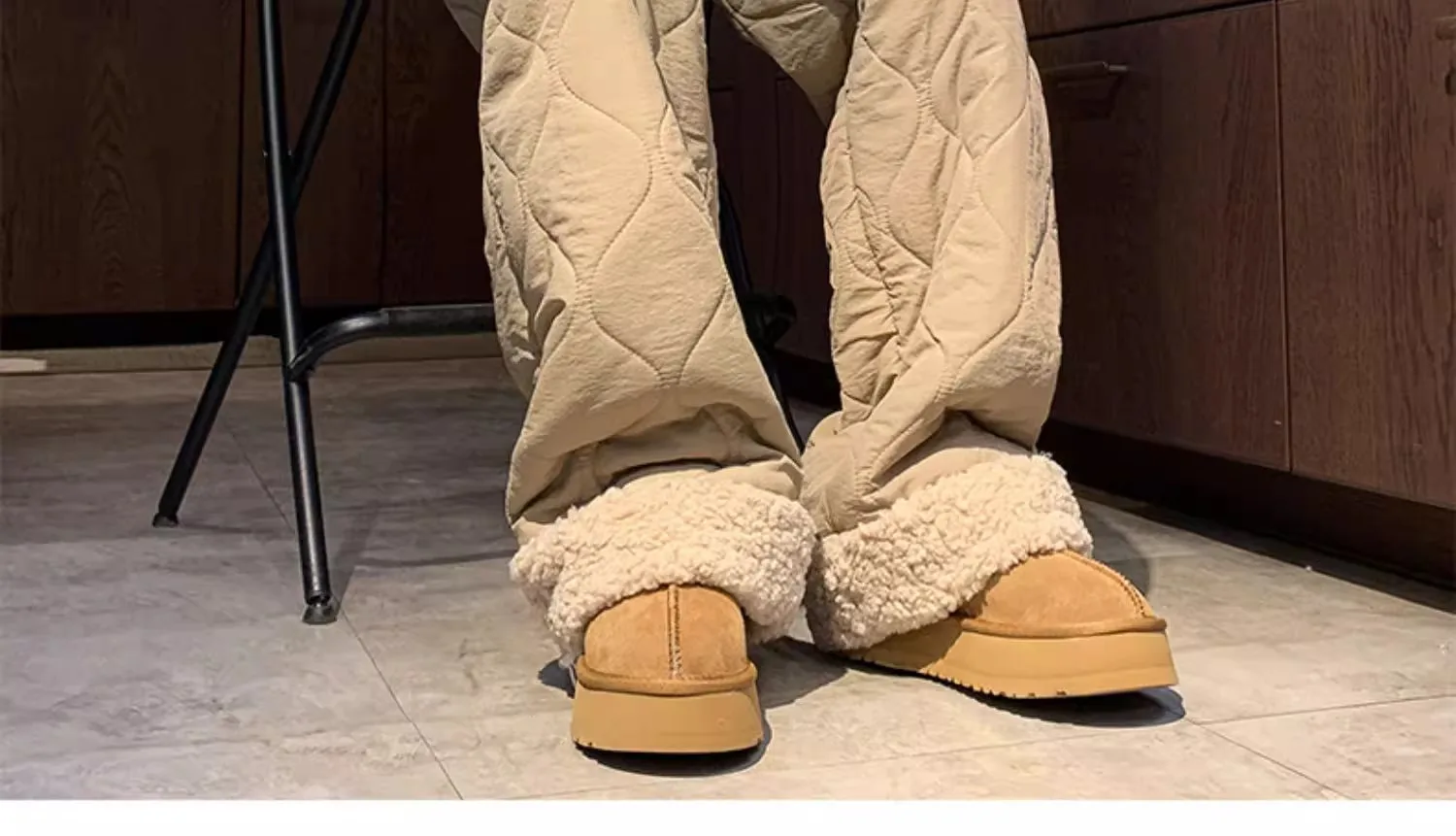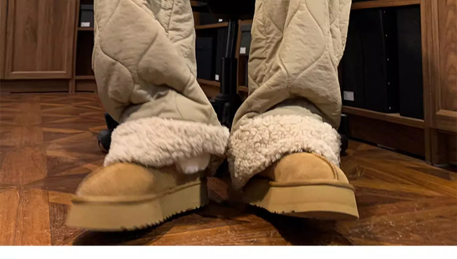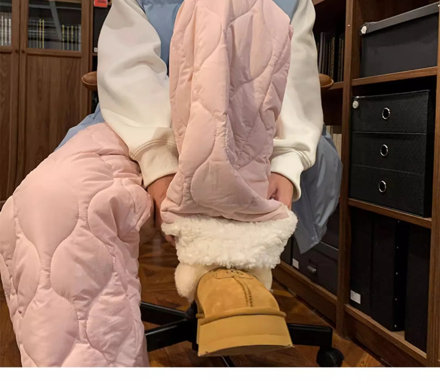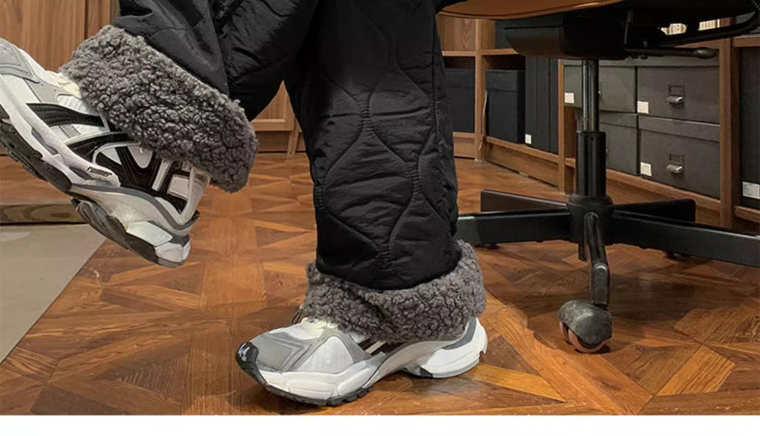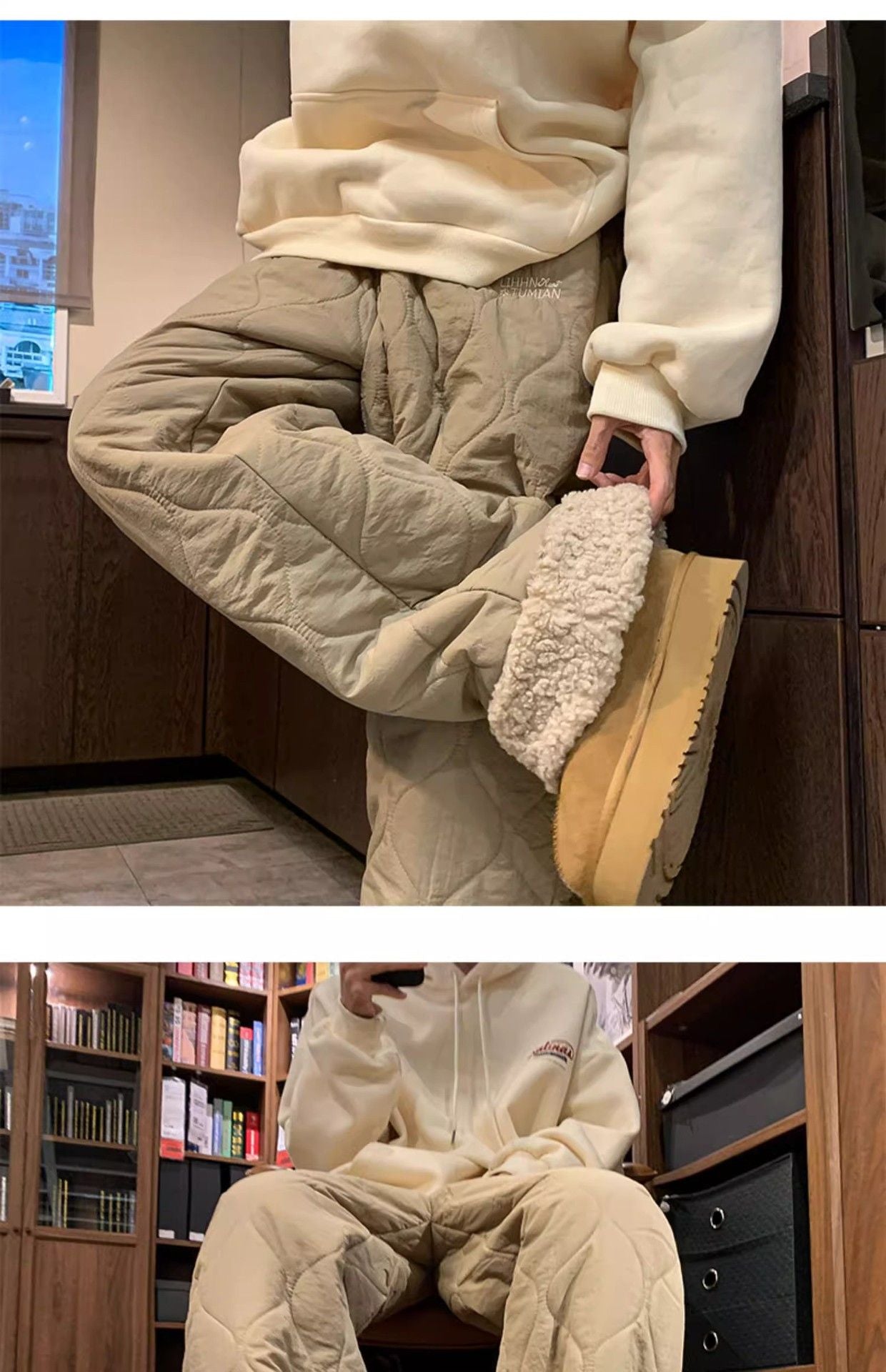 Heavy Winter Cotton Waterproof Splicing Lamb Fleece Cotton Pants for Men and Women, Solid Color Diamond Grid Embroidered Clip Co