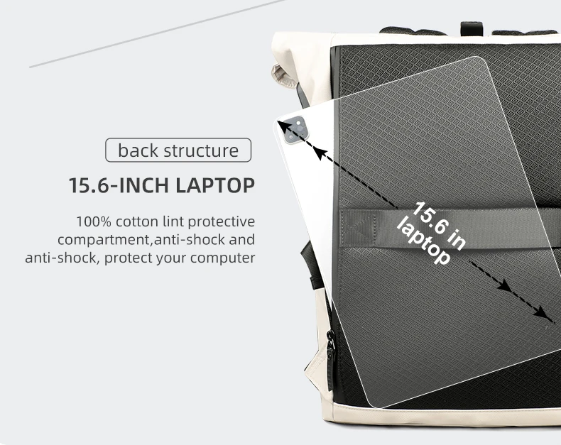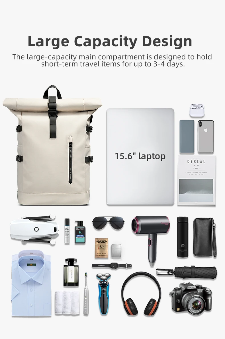 This business backpack is fashion, simple and practial, with a large main compartment for 15.6-inch laptop and 12.9-inch ipad, books, clothes.