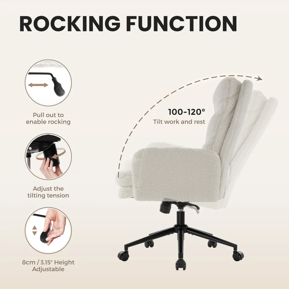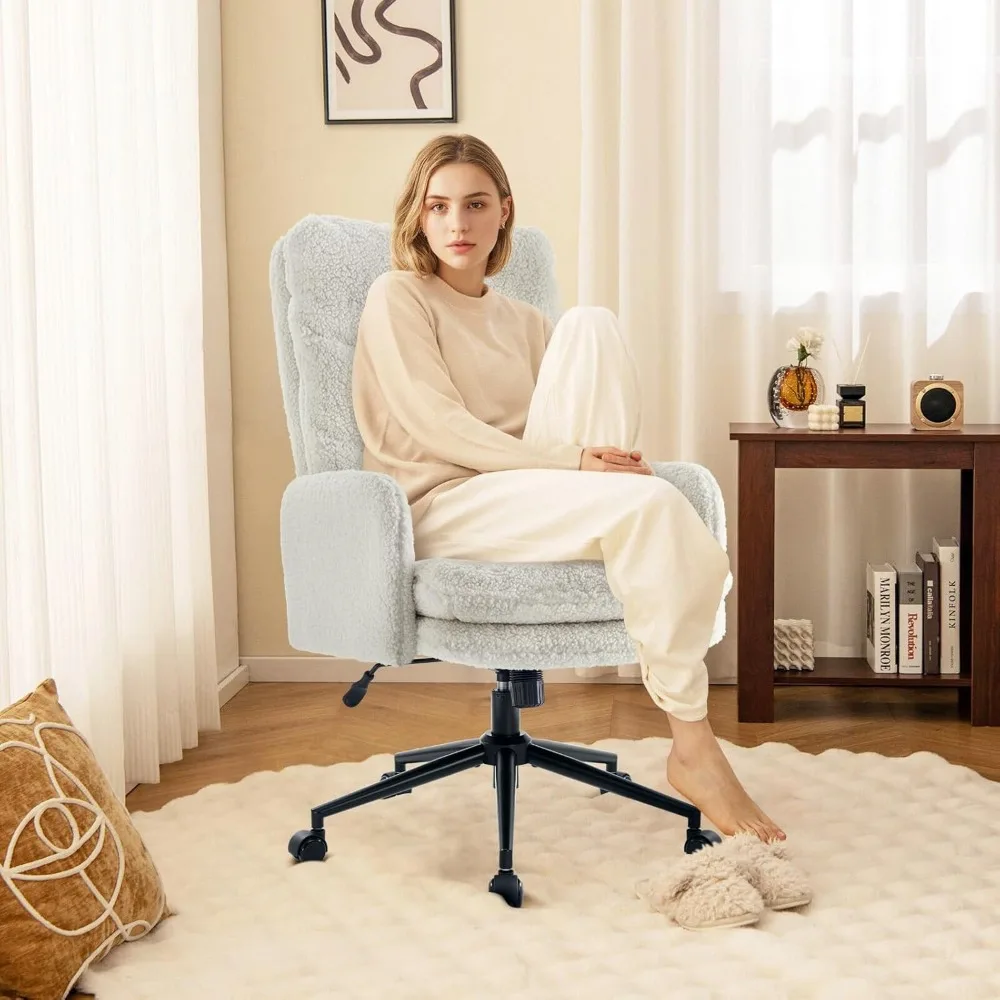 - Modern desk chair. The high backrest armchair adopts a modern design that combines modern style and plush comfort, with a beautiful appearance, providing you with a comfortable sitting experience. It is very suitable for offices, study rooms, living rooms, dressing tables,and bedrooms. No matter which scene you place it in, this swivel chair can meet your decorative needs.
