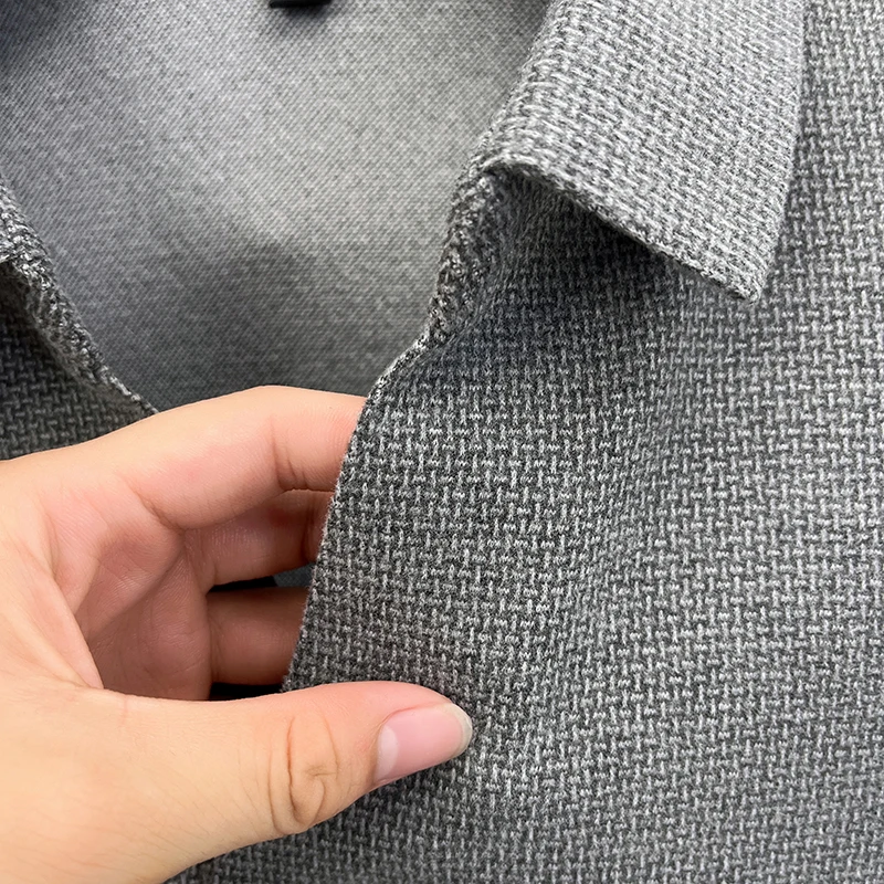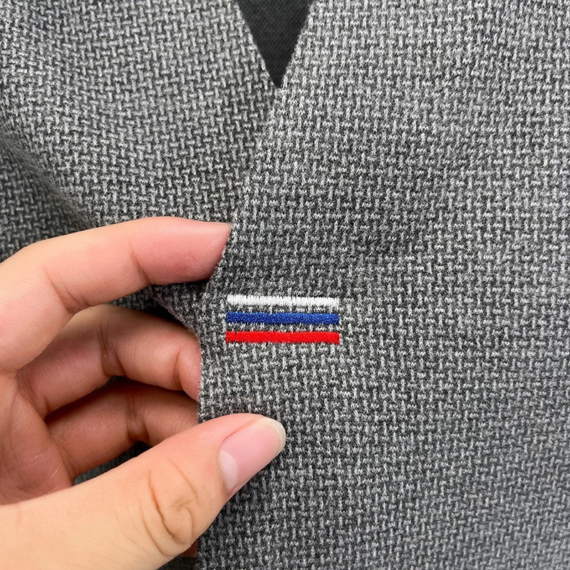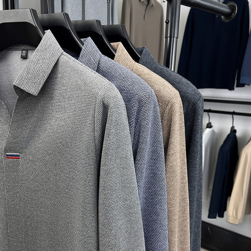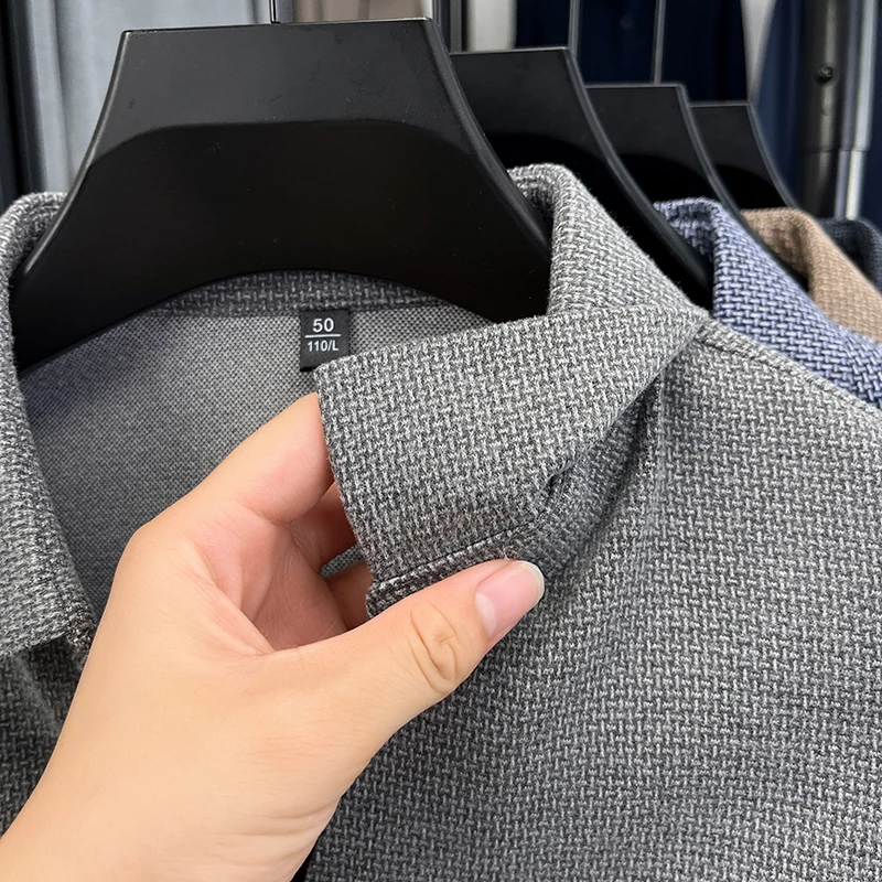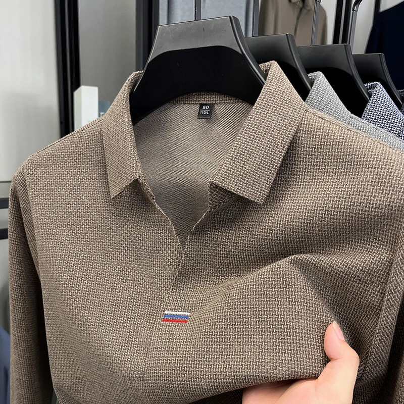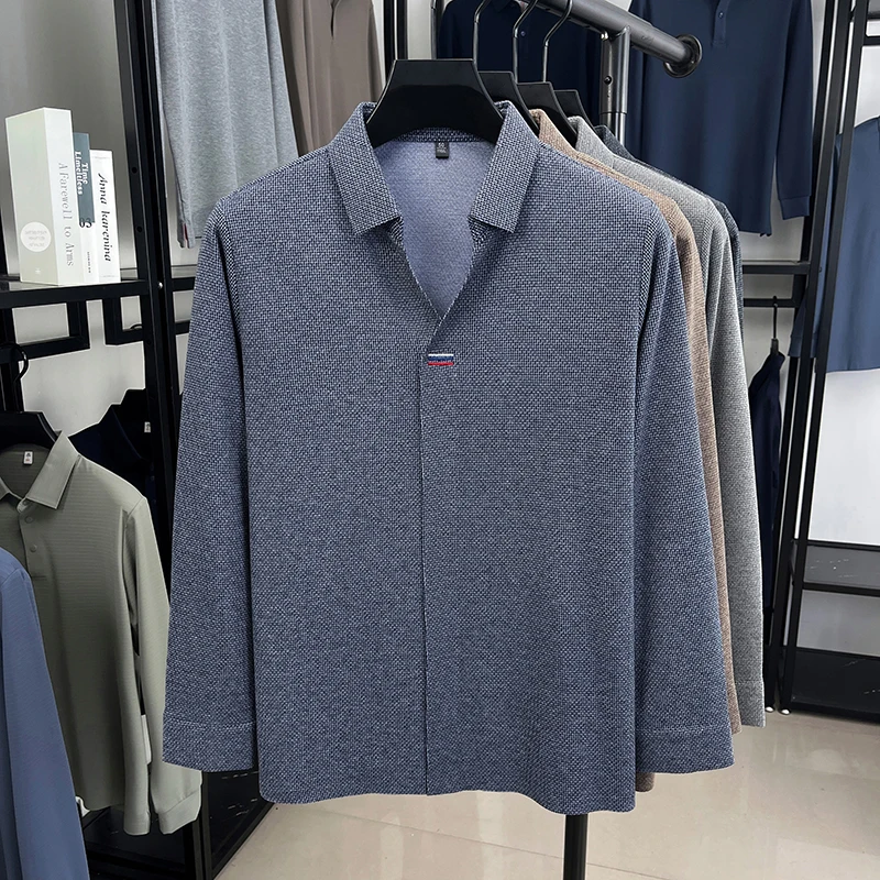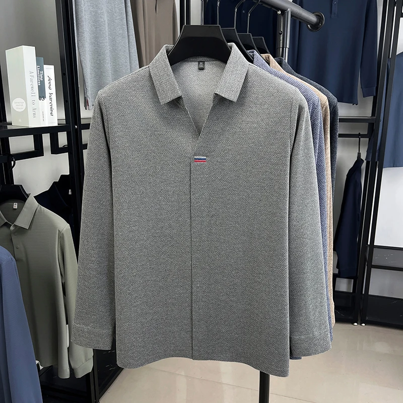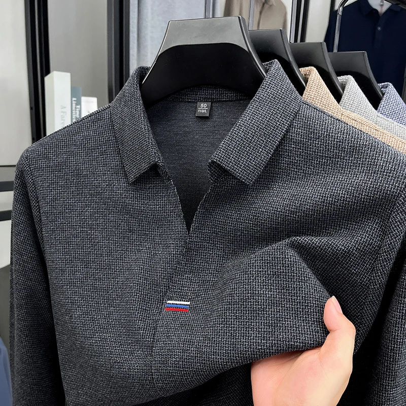 High end brand men's long sleeve V-neck polo shirt autumn fashion new striped embroidery design boutique golf top casual T-shirt