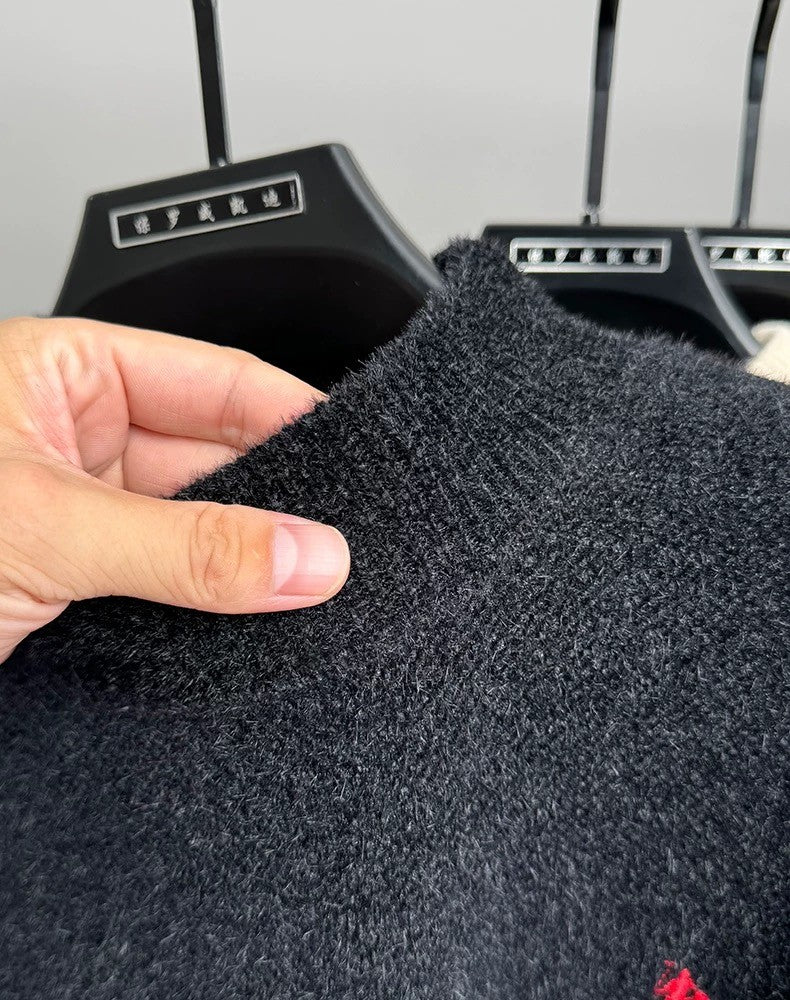 High end brand velvet sweater men's new designer fashion exquisite pony embroidery winter thick warm round neck knitted pullover
