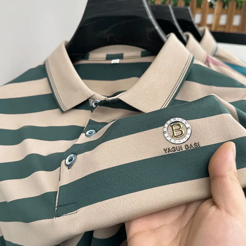 High End Design Men's Polo Shirt Striped Letter Print Short Sleeve Lapel T-Shirt Summer New Business Versatile Casual Men's Wear