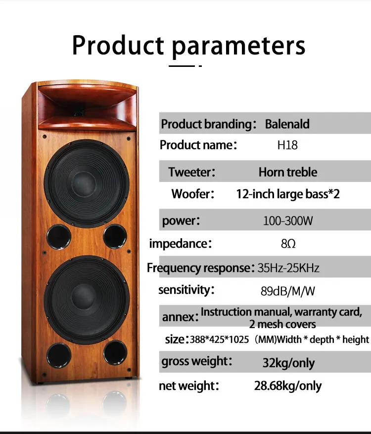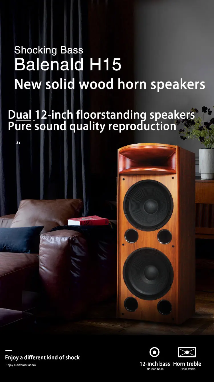 high-end H18 fever-grade floor-standing speaker solid wood horn dual 12-inch speaker hifi speaker passive audio
