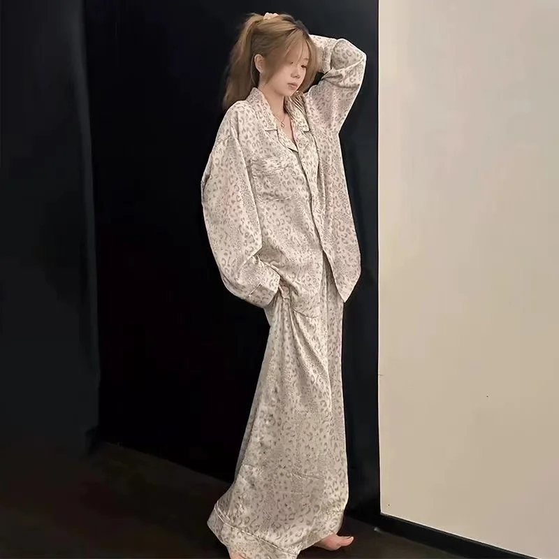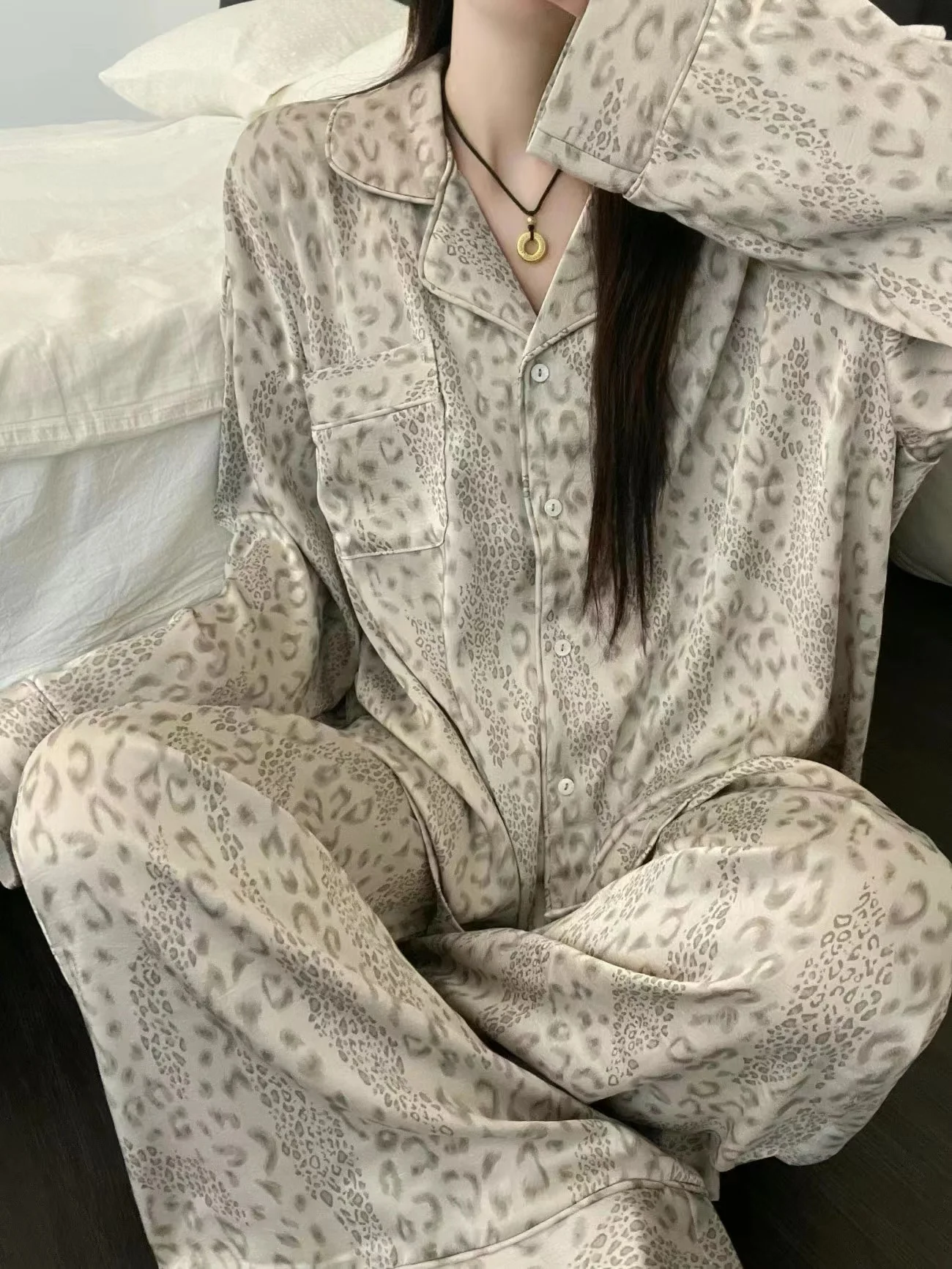 High-end leopard print pajamas for women spring autumn trend new simple girly style home suit personalized dress pajama party