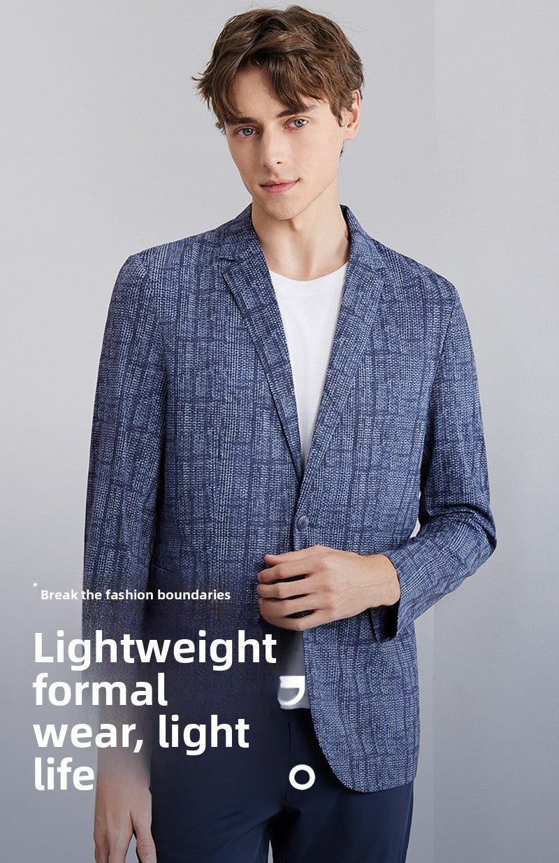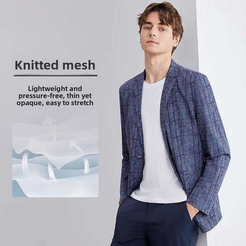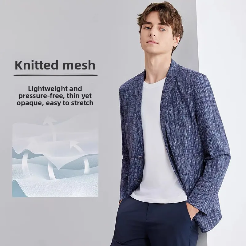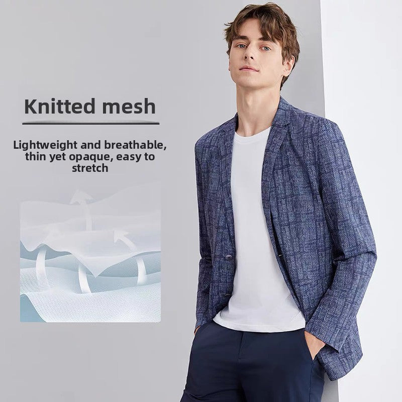 High-End Lightweight Knitted Me Qui-Dry Casual Men's Summer Thin Suit Jaet Busin Gentleman Sle round Hemline Long ...