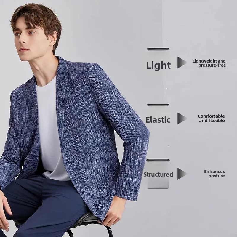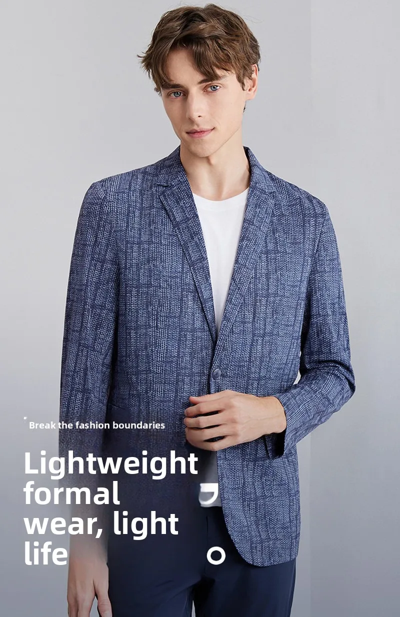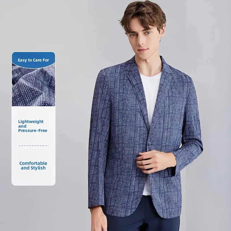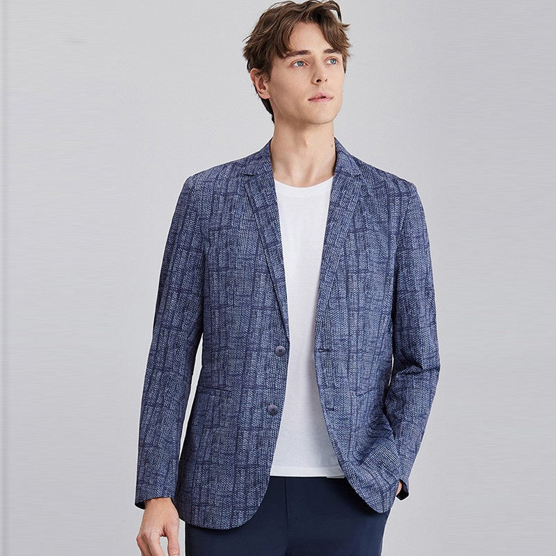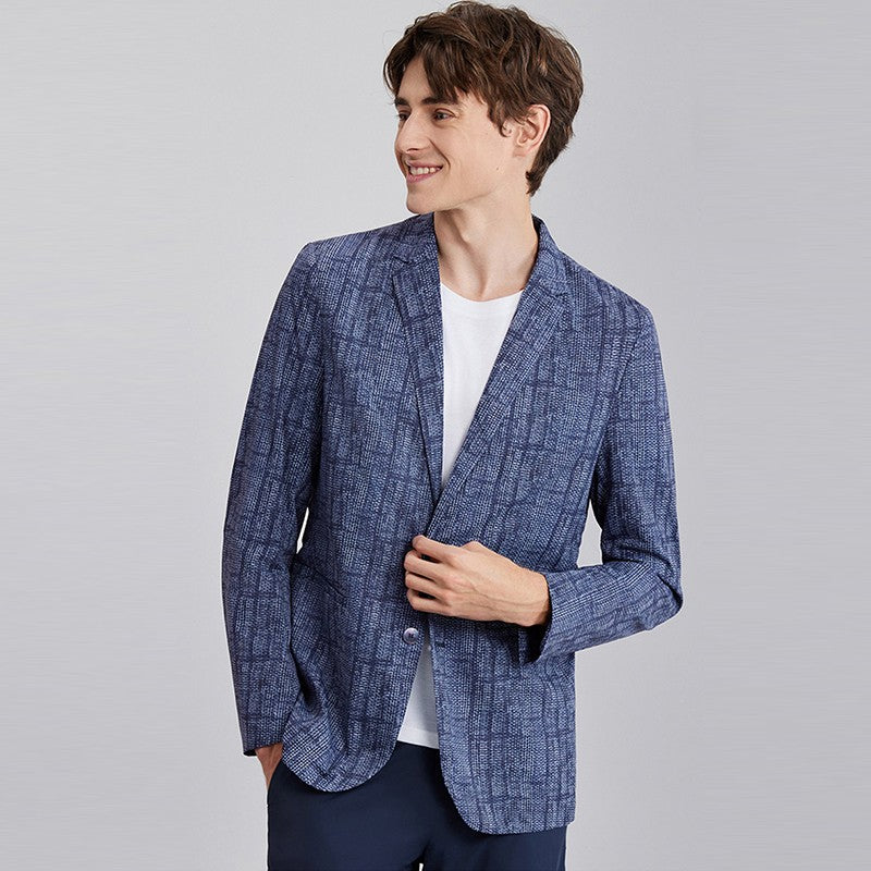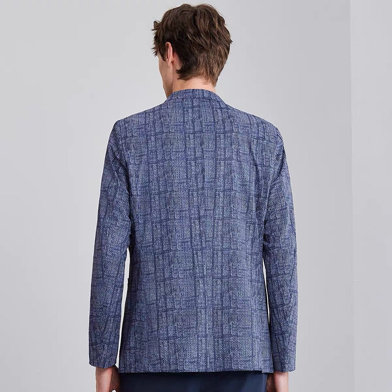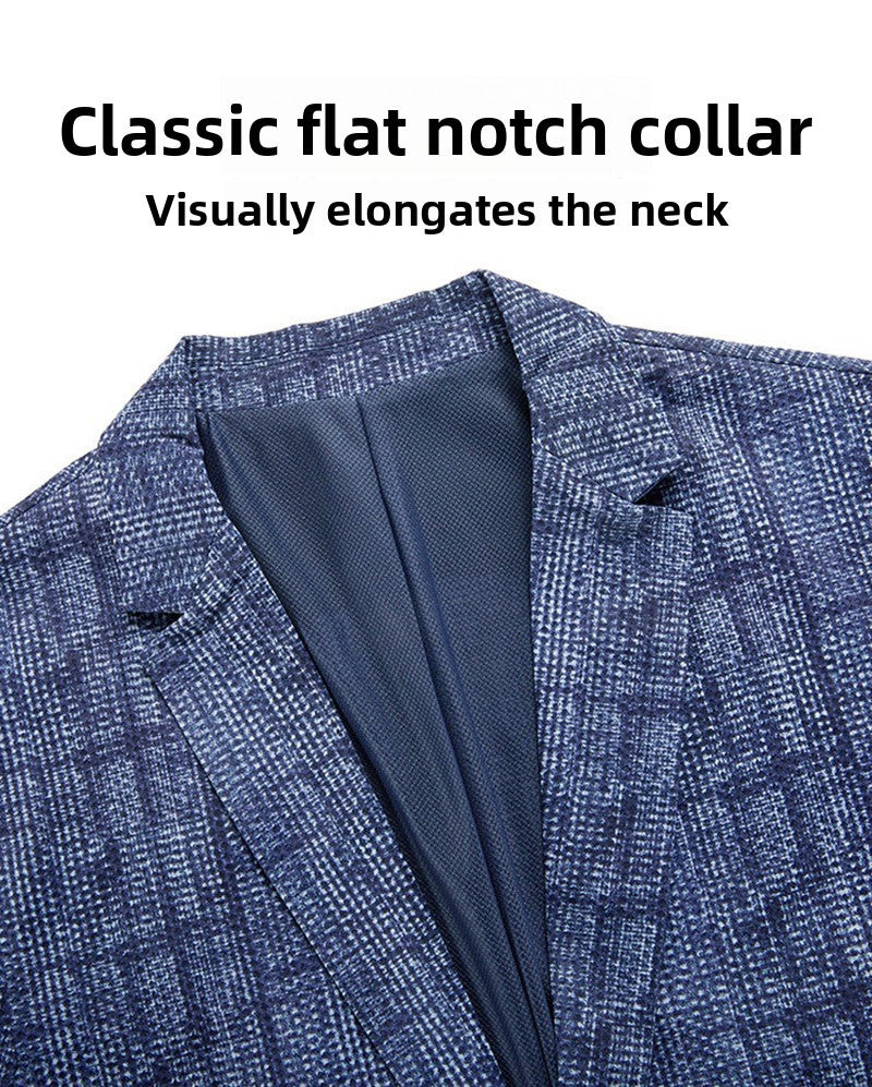With its standard cut and classic flat collar, this jacket seamlessly transitions from business meetings to casual outings.