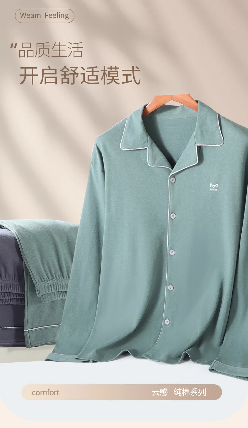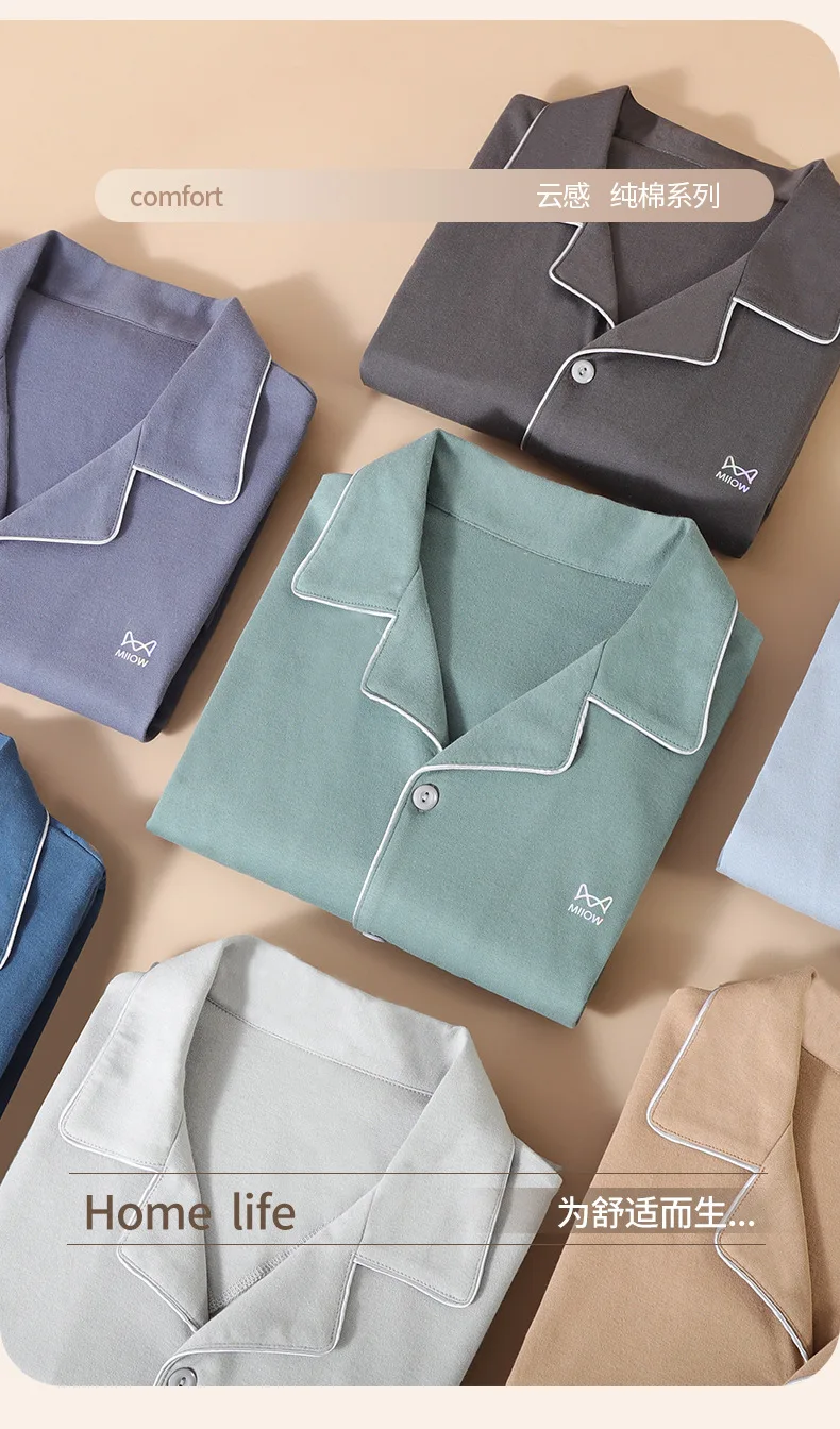 High Quality 100% Cotton Pajamas Suit Men Outside Classic Simple Male's Homewear Fashion Soft Breathable Sleepwear Business Gent