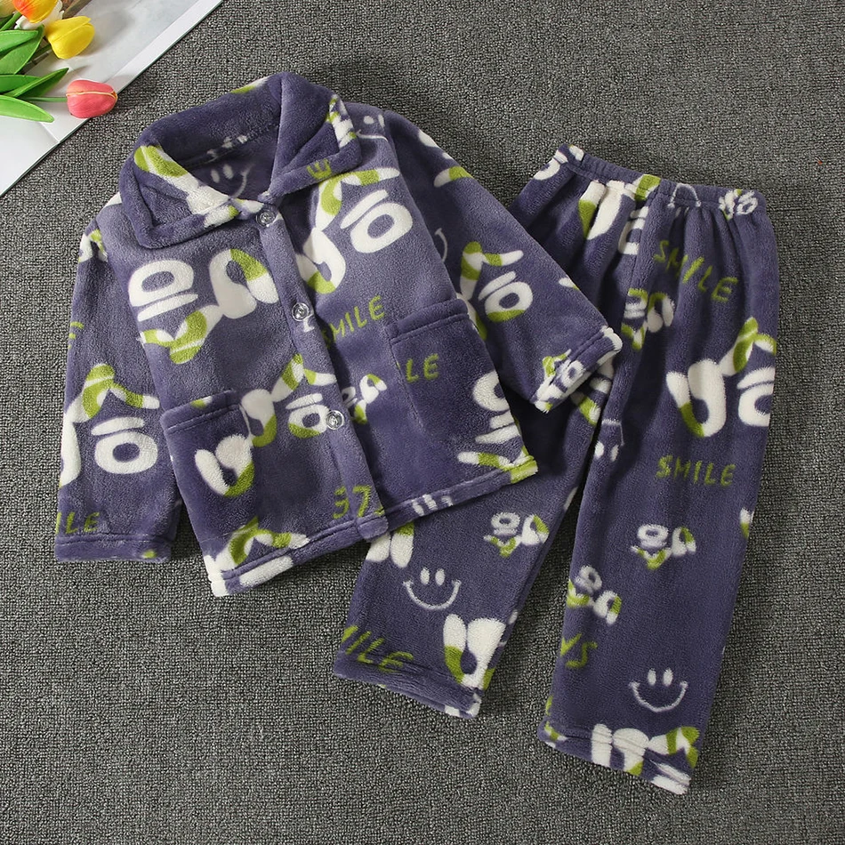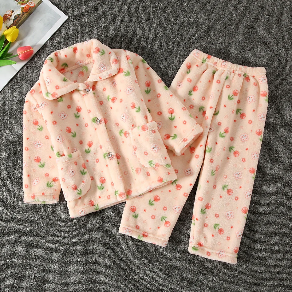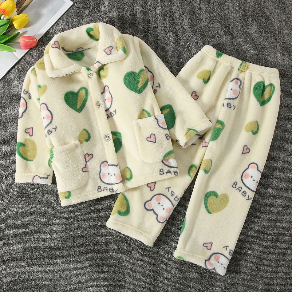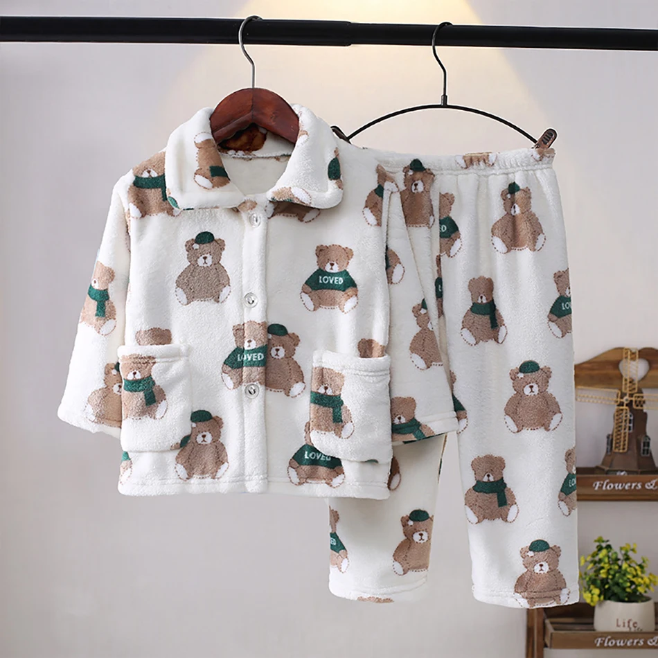 High Quality Coral Fleece Flannel Cute Cartoon Pattern Pajama Sets Boys and Girls Long Sleeve Warm Comfortable Winter Sleepwear