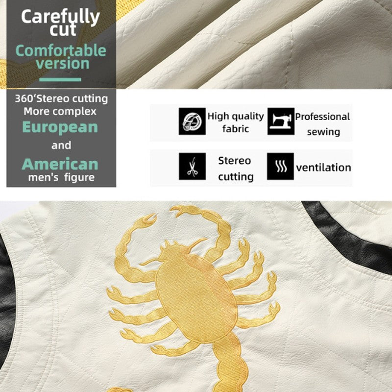 High Quality Men Leather Jacket Scorpion Embroidery Streetwear Windproof Motorcycle Biker Stand Collar Mens PU Leather Jackets