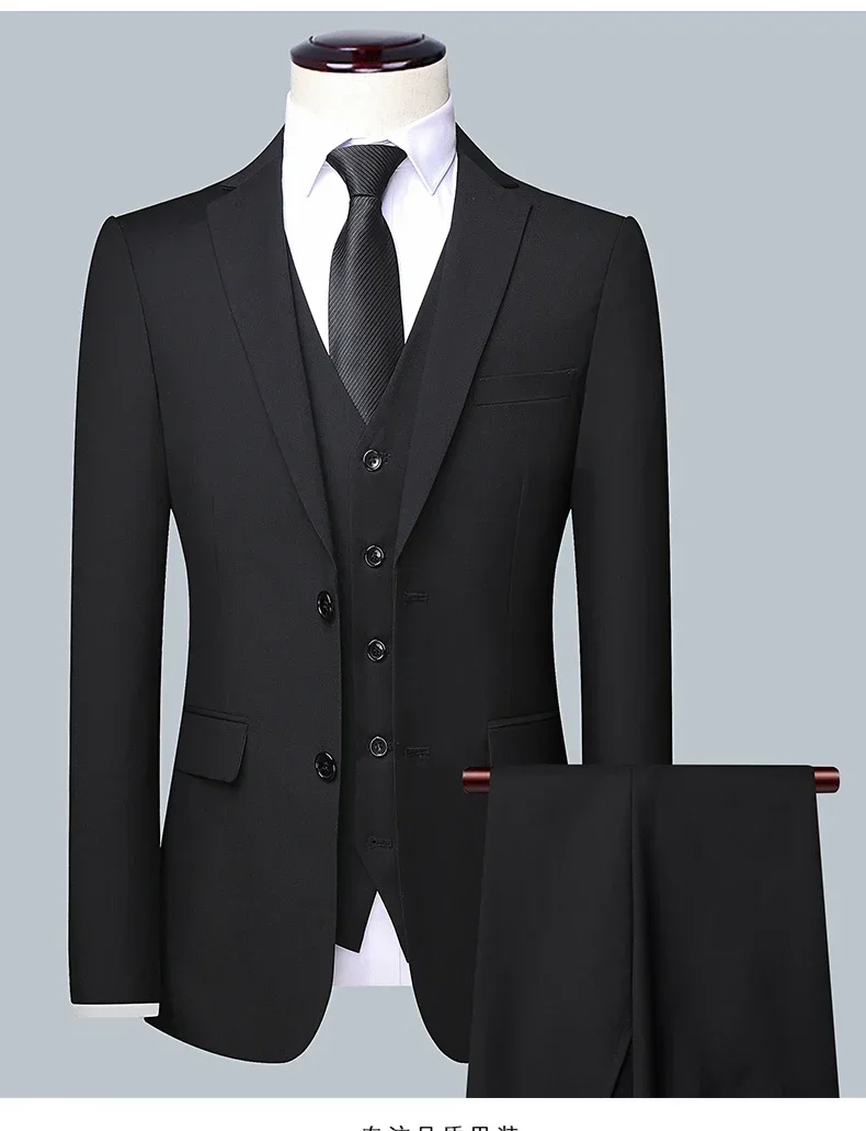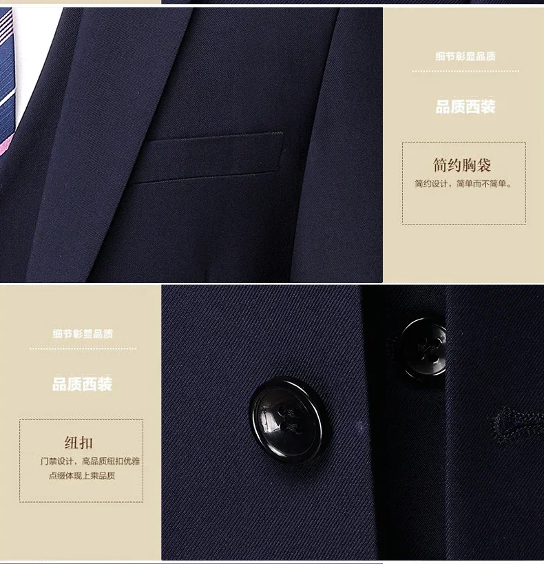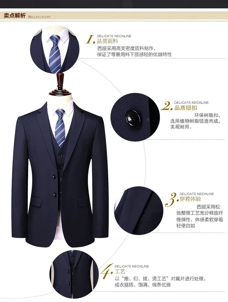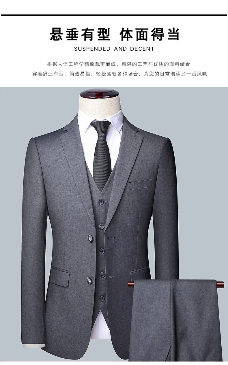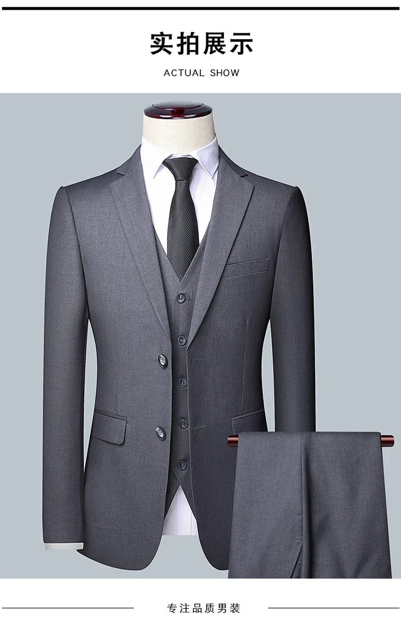 High quality Men Solid color Business - stylish handsome groom best man wedding dress 3/2/1 Single piece optional