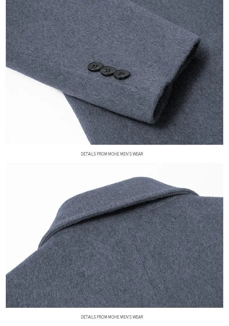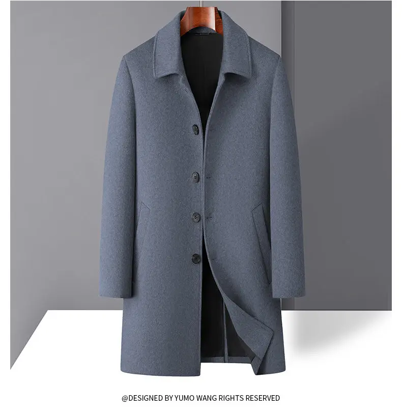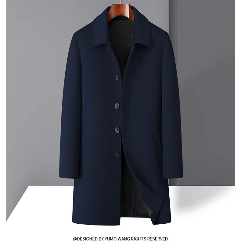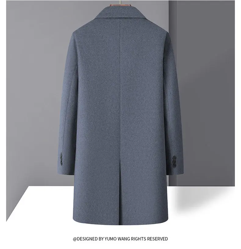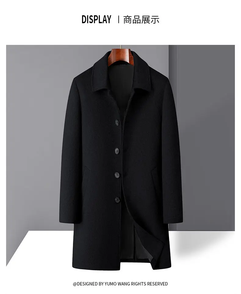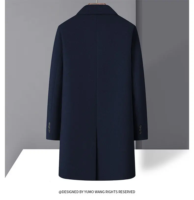 High-quality men's fashionable, stylish and versatile solid-color casual long woolen overcoat, wool woolen overcoat