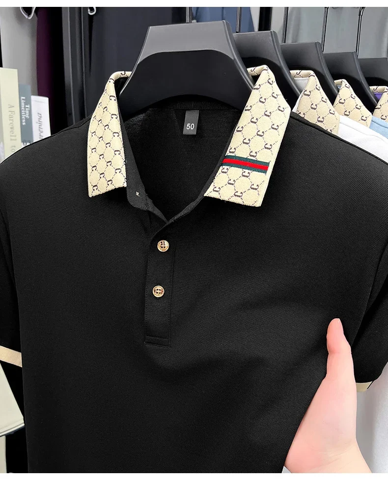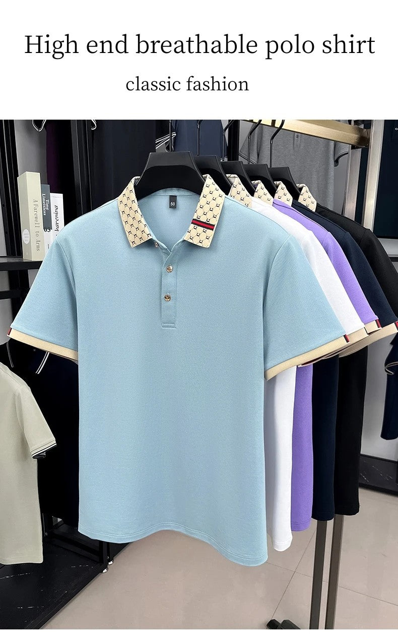 High quality men's short sleeve polo shirt summer light luxury business style comfort casual patchwork neckline fashion T-shirt
