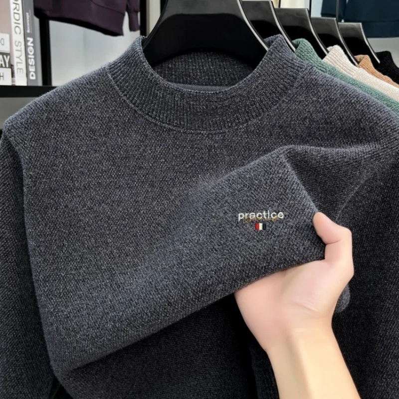 High quality plush thick men's sweater fashion brand letter embroidery winter warm round neck Korean casual knitted pullover
