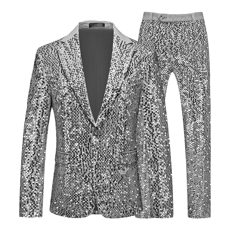 High-quality Sequined Suits Men Clothing Gold / Silver Autumn / Winter New Male Wedding Banquet Party Dress Blazer and Pant