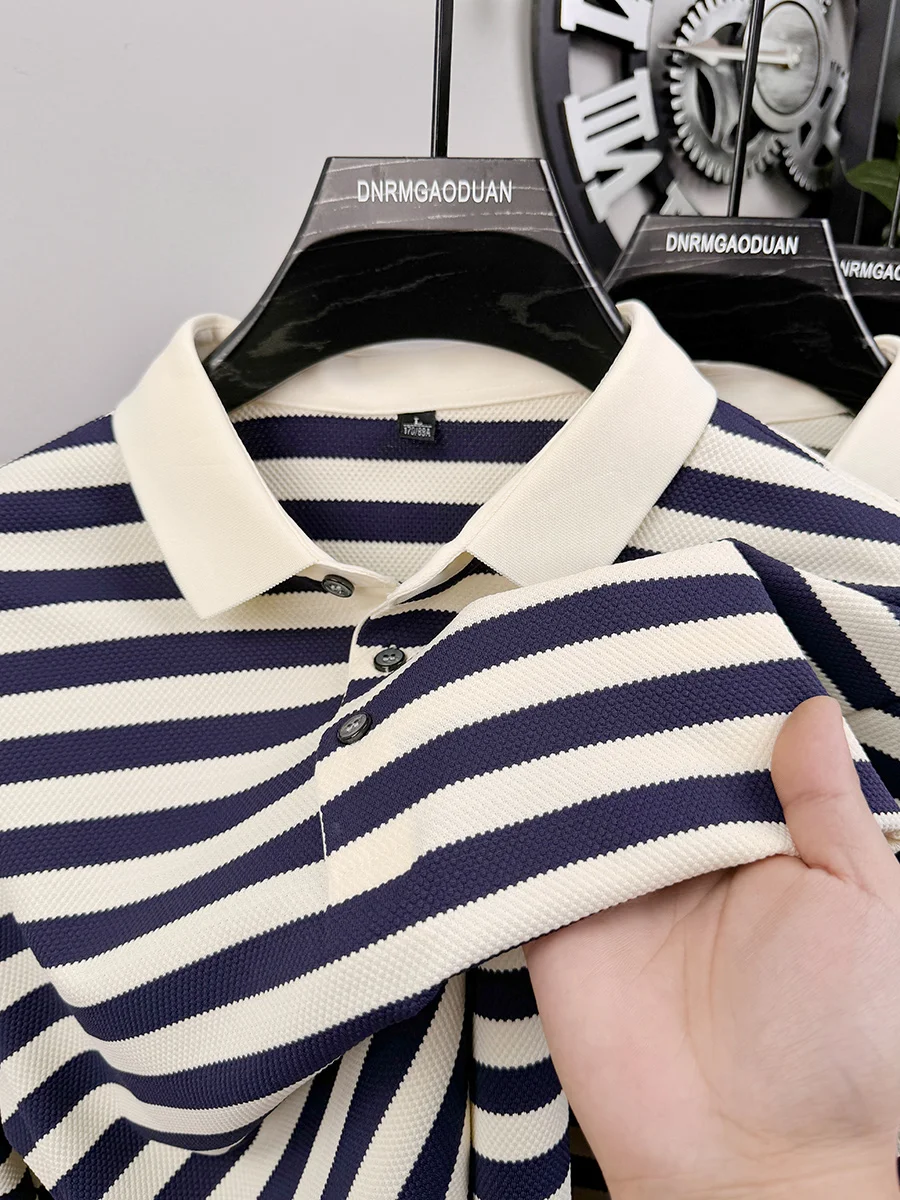 High Quality Summer Men's 2025 New Short Sleeved T-shirt with Striped Half Sleeves Trendy T-shirt Polo Shirt for Men