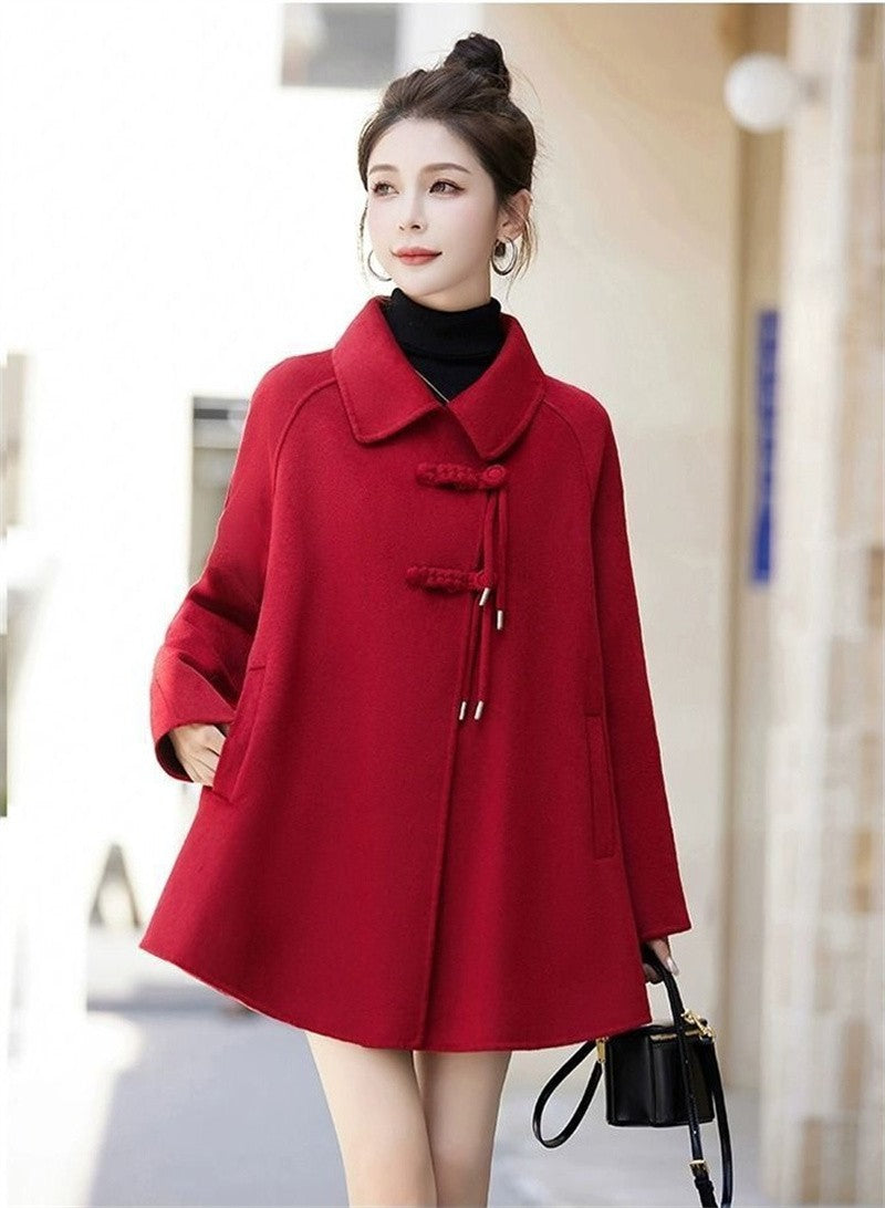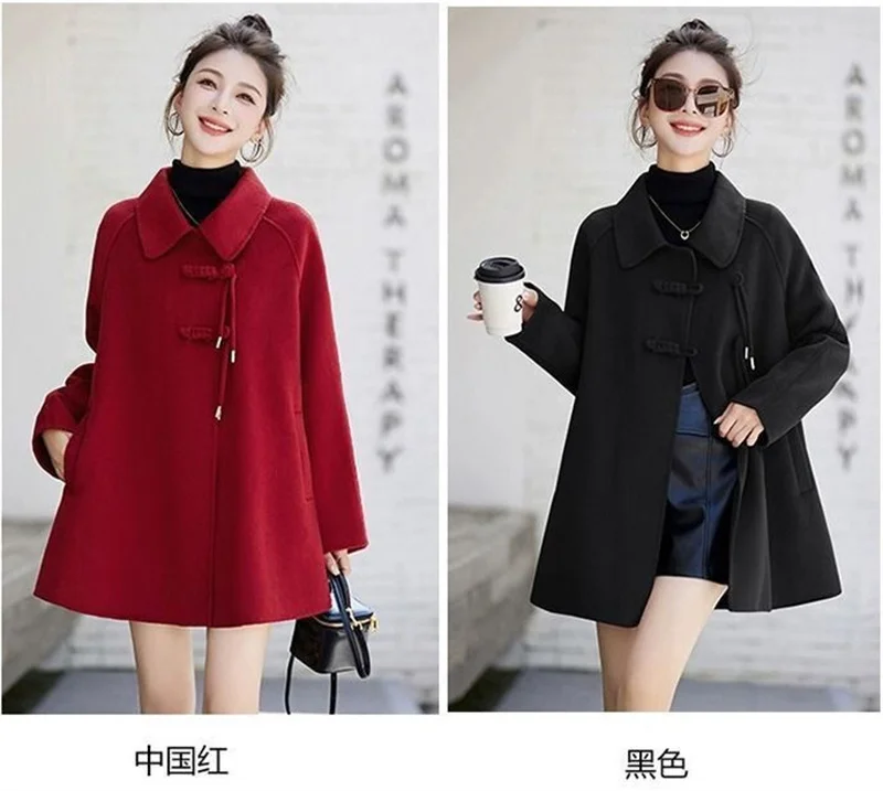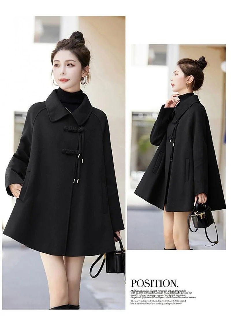 High Quality Woolen Coat Women 2025 Autumn Winter New Cloak Long Wool Jacket Chinese Retro Buckle Ladies Overwear Korean Outcoat