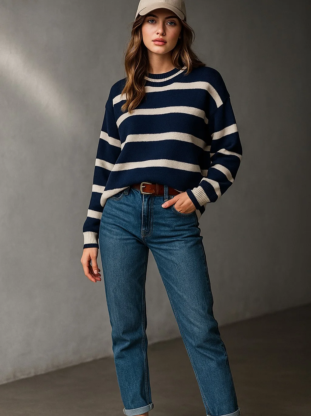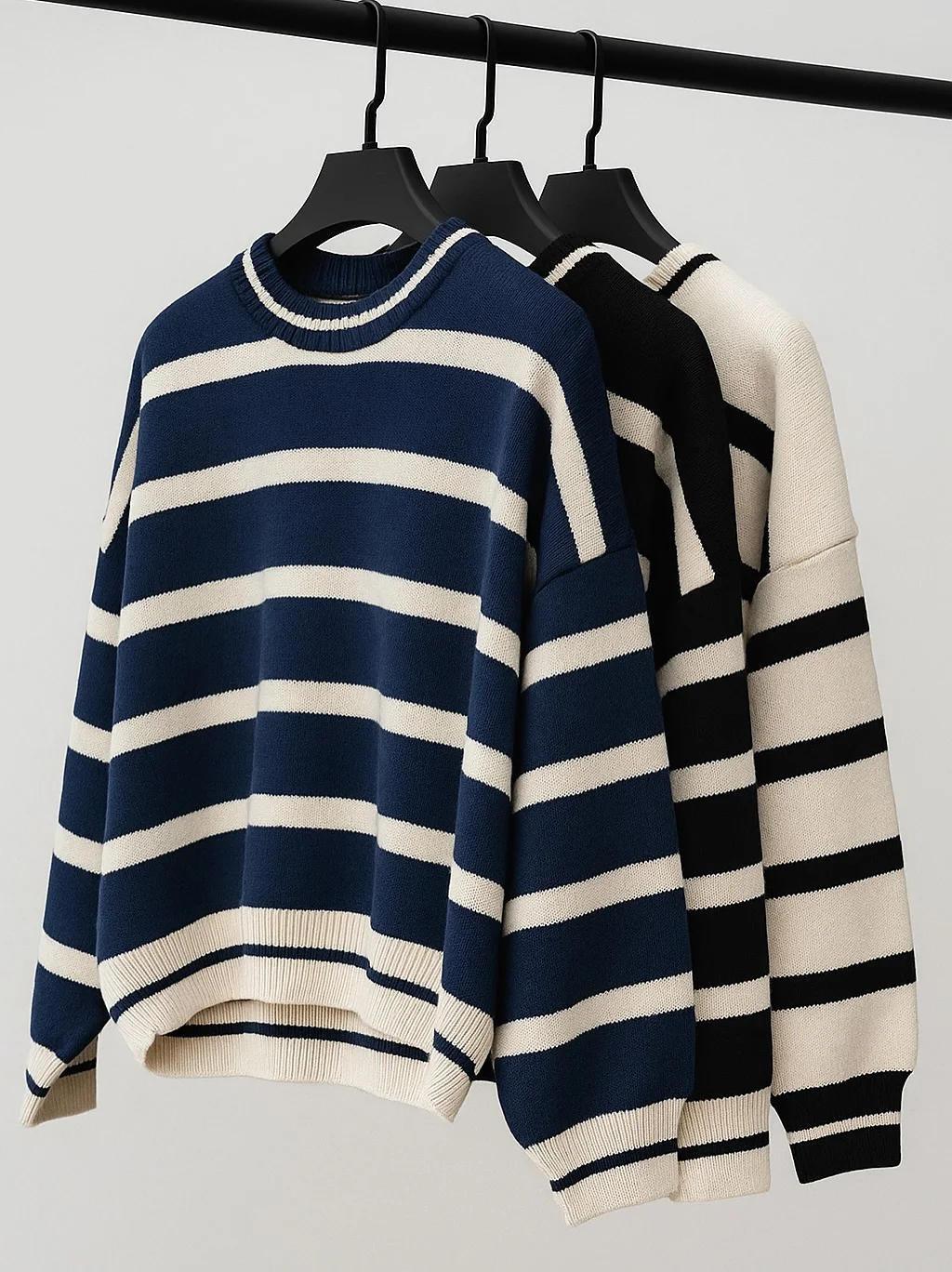 High Street Fashion Clothing New Style Fashion Striped Casual Long Sleeve Sweater Men Harajuku Y2K Warm Embroidered Long Sleeve