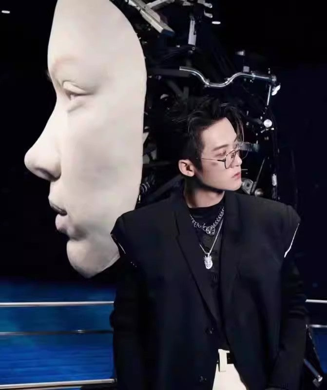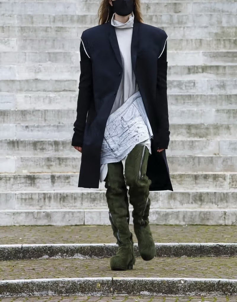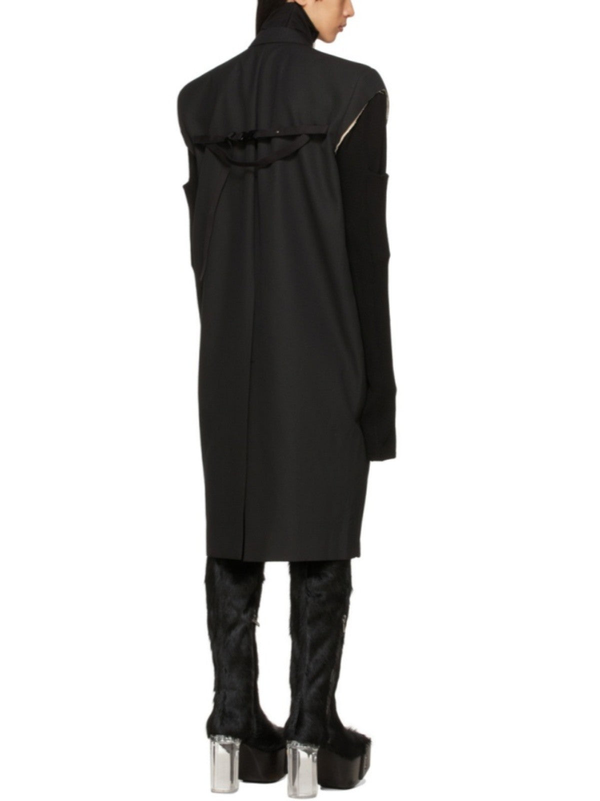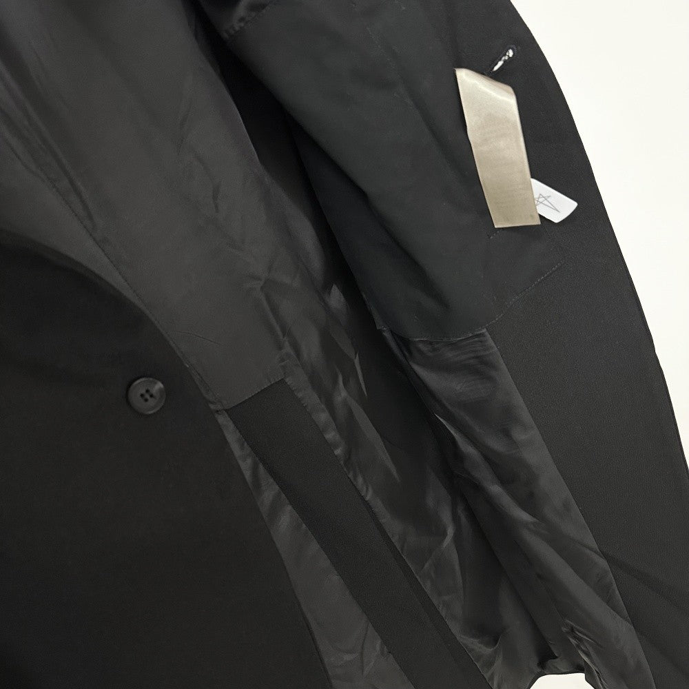 High Street Men's and Women's RO Dark Show Knitted Edge Splicing Sleeve Wide Shoulder Windbreaker Coat Medium Length Blazer Coat