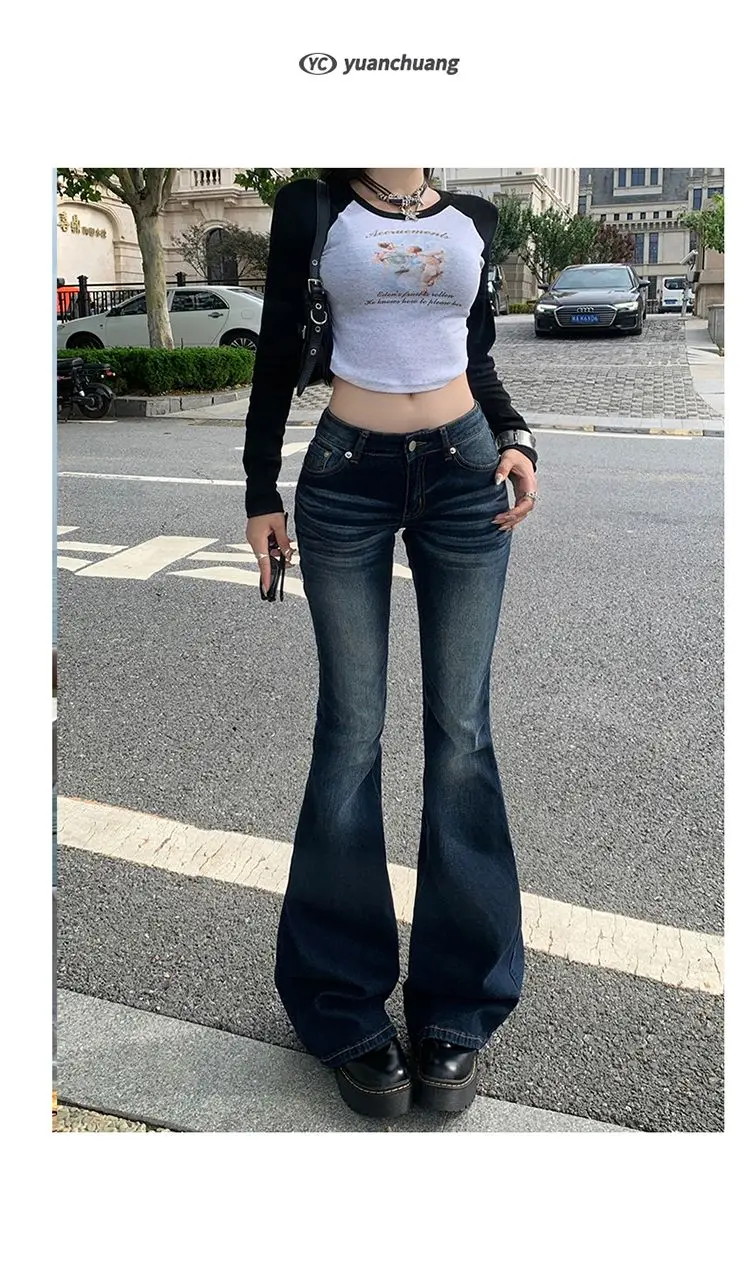 High Waist Jeans Womens Fashion Personality Slim Fit Retro Bell Bottoms Trousers Autumn Winter Jeans Women's Pants Women Pants