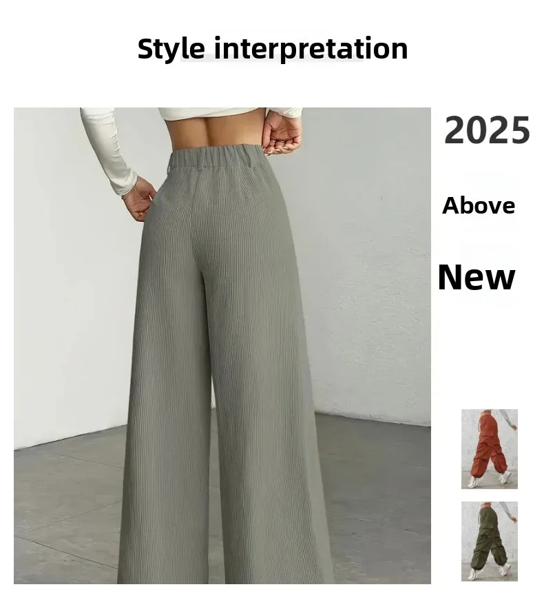 High Waist Striped Wide Leg Pants Commute Versatile Casual Long Trousers New 2025 Women's Fashion Cross-Border Clothing