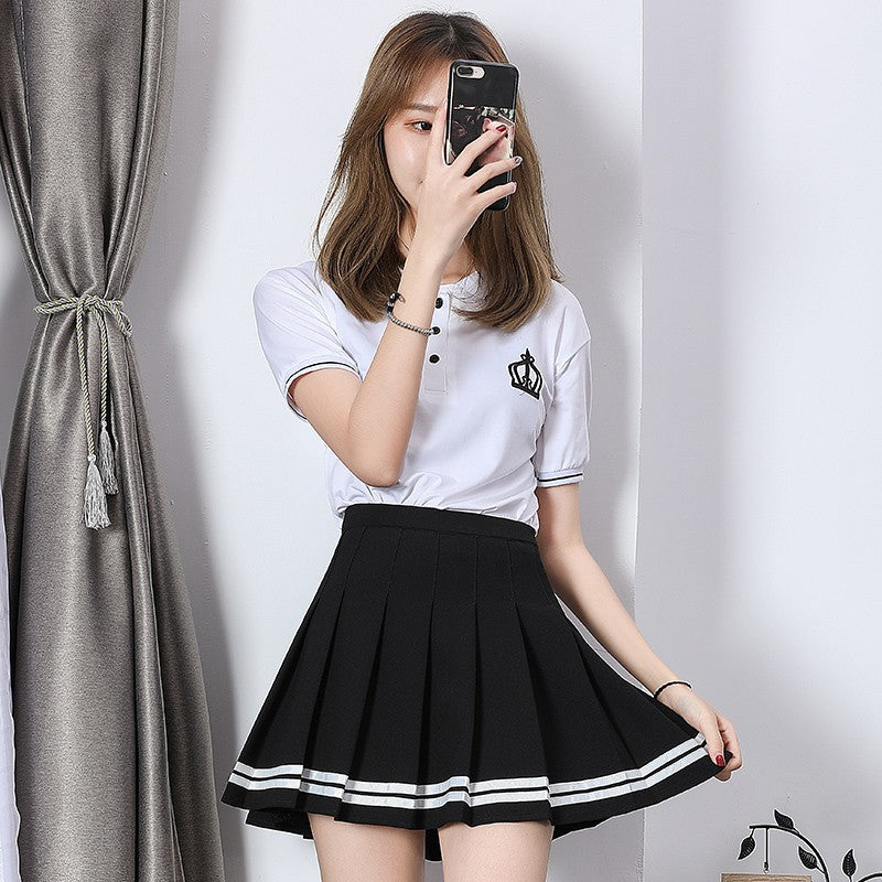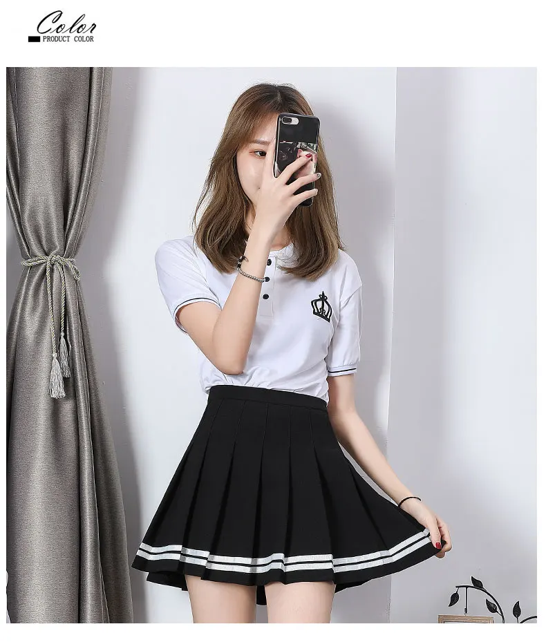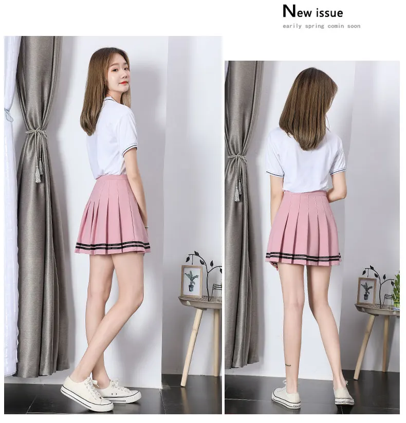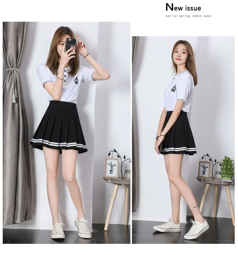 High Waist Women's Skirts Striped Pleated Elastic Waist Female Sweet Mini Dance Plaid Skirt Y2k Korean England Style