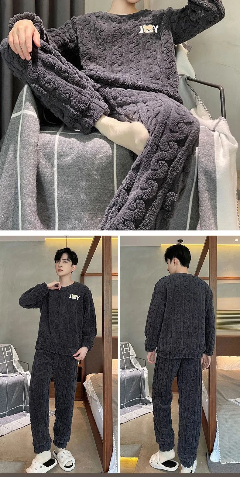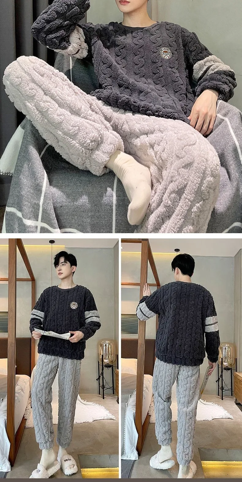 Higher Quality Thickened Warm Flannel Plus Size Men’s Pajamas Winter Nightwear Loungewear Fashion Striped Sleepwear Homewear