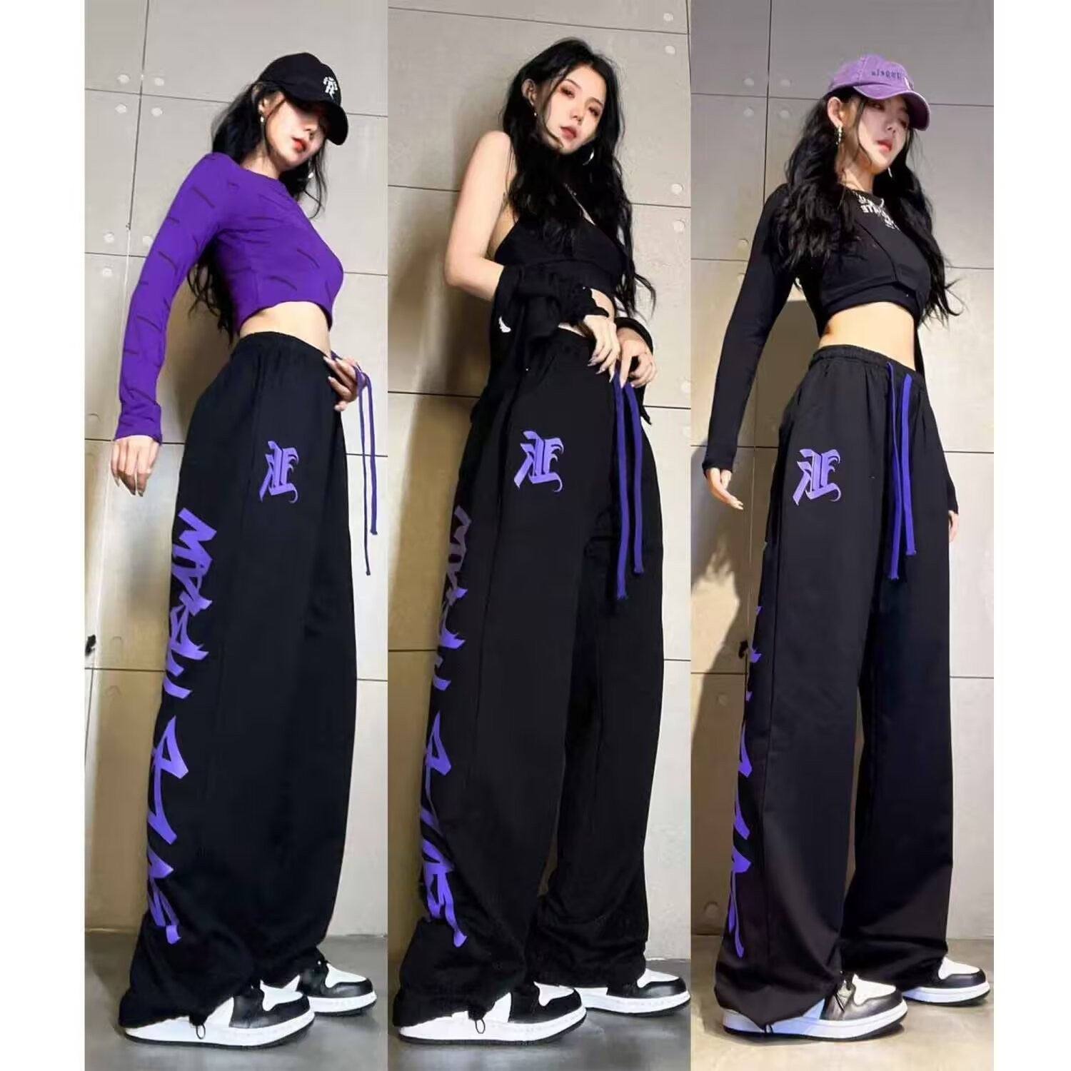 hiphop plus-size sweatpants female jazz dance dance pants American hiphop high waist wide leg drawstring casual sports pants