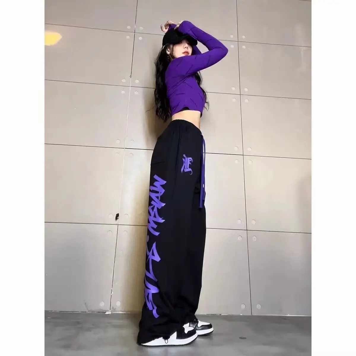hiphop plus-size sweatpants female jazz dance dance pants American hiphop high waist wide leg drawstring casual sports pants