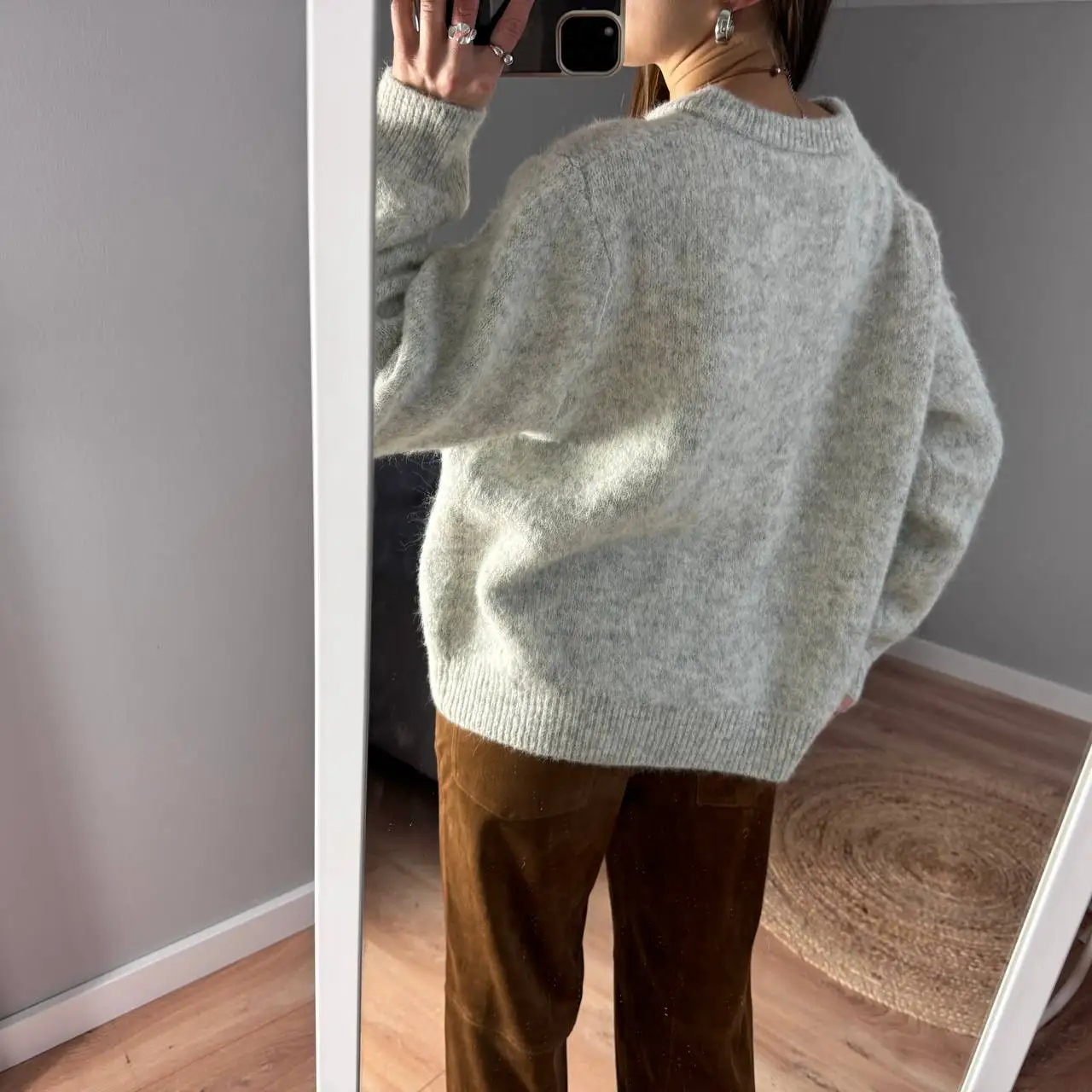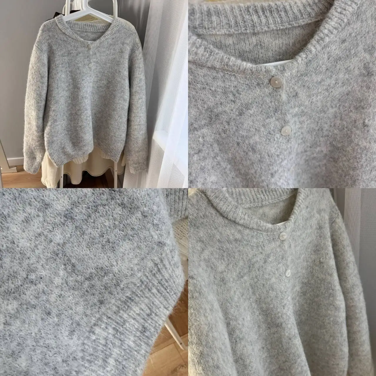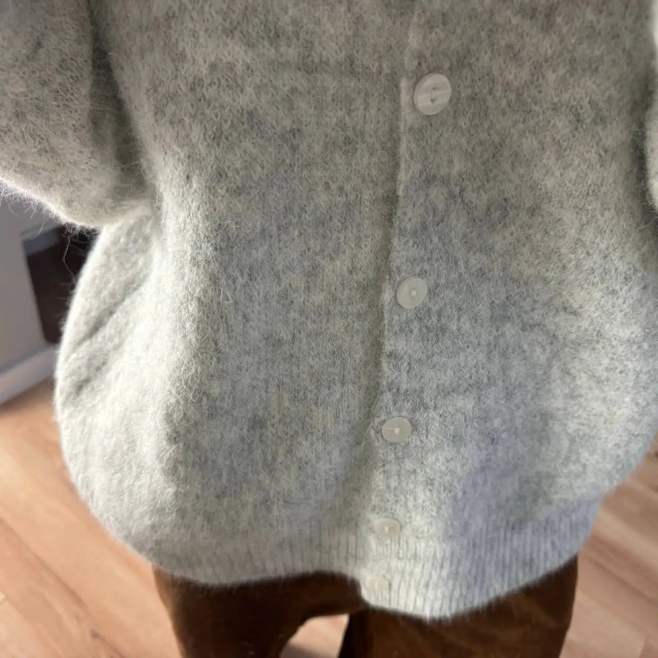 Hirsionsan Elegant Long Sleeve Sweater Women 2024 New Single-Breasted Female Casual Cardigan Soft Cashmere Knitted Outwear